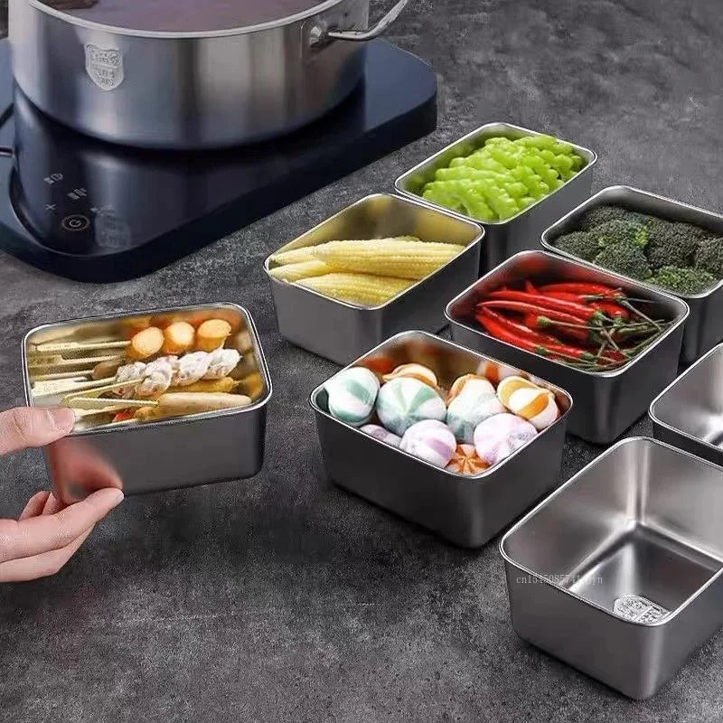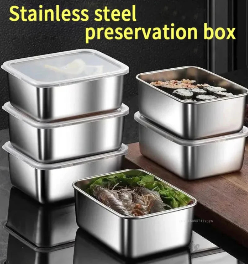 Stainless Steel Rectangular Crisper Household Outdoor Lunch Box Refrigerator Frozen Crisper Containers for Kitchen Accessories