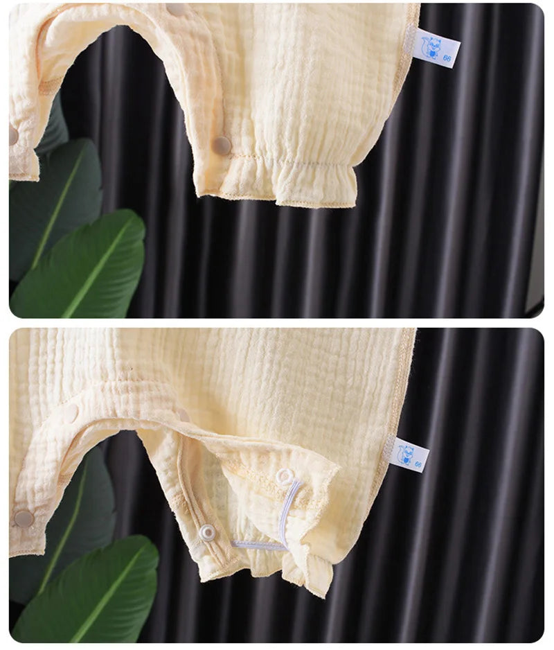 2Pcs Baby Summer Jumpsuits Hat Set Bear Muslin Newborn Romper for Boys Girls Clothes Toddler Onesie Infant Outfit Clothing