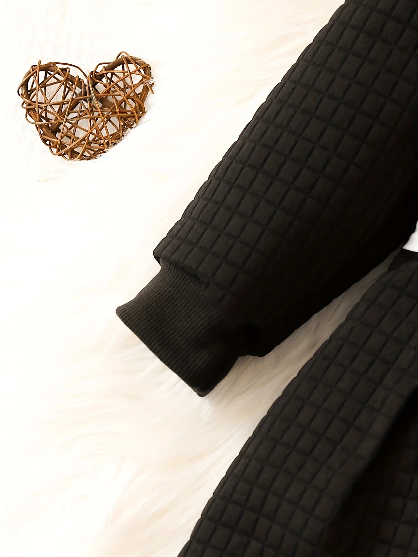 Baby Girls Fashion Autumn And Winter Thermal Belted Dress Set Princess Coat Classic Black And White Color Contrast Cardigan