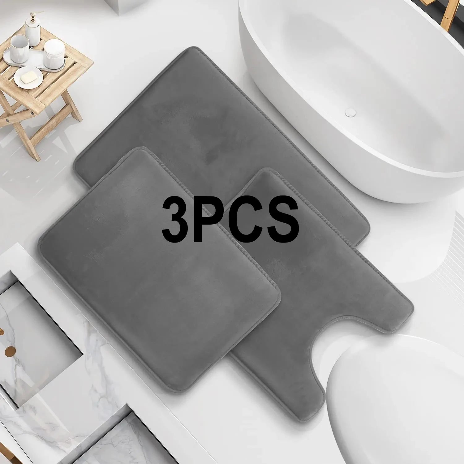 3PC Bathroom Rugs Velvet Memory Foam Non-Slip Bath Rugs Machine Wash Dries Quickly - Ultra Soft Bath Mats for Bedroom kitchen