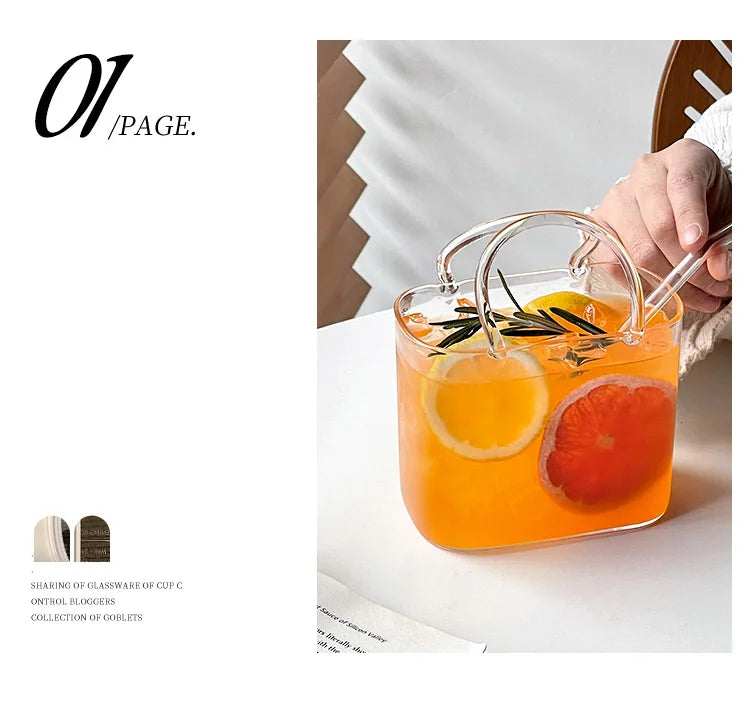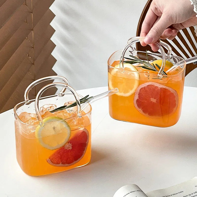 770 Ml Handbag Glass Beverage Cup Cocktail Glass Wine Cups with Straw Creative Fruit Tea Juice Mug for Home Special Drinkware