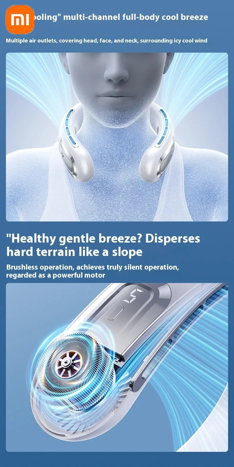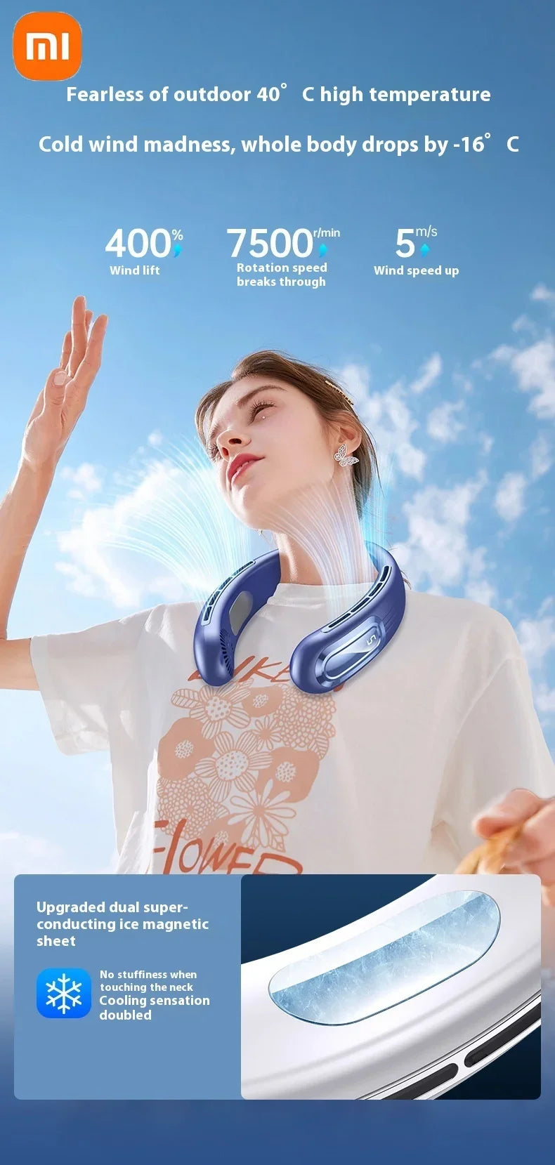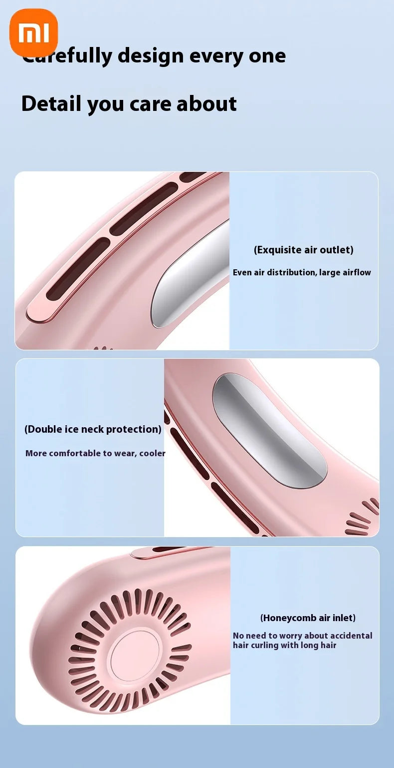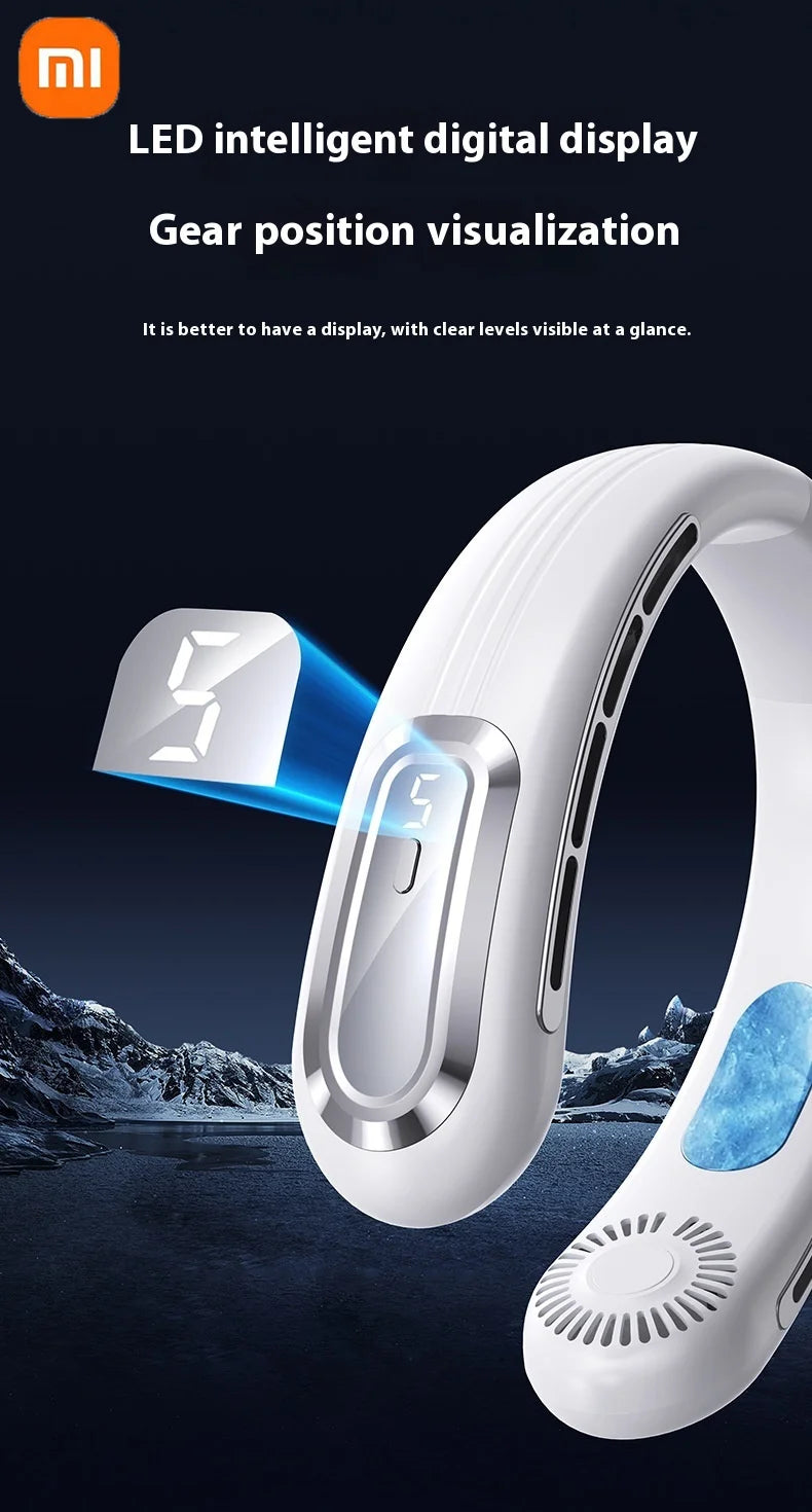 Xiaomi Bladeless Neck Hanging Fan USB Rechargeable Cooler Fan 5 Speed Bladeless Design Outdoor Sports Use