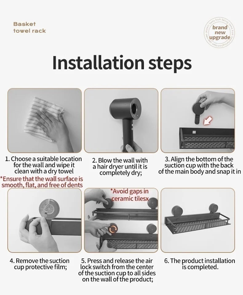 No Need To Drill Suction Cup Bathroom Storage Rack, Wall-mounted Oganizing Rack Cosmetic Storage Rack, Kitchen Storage Rack