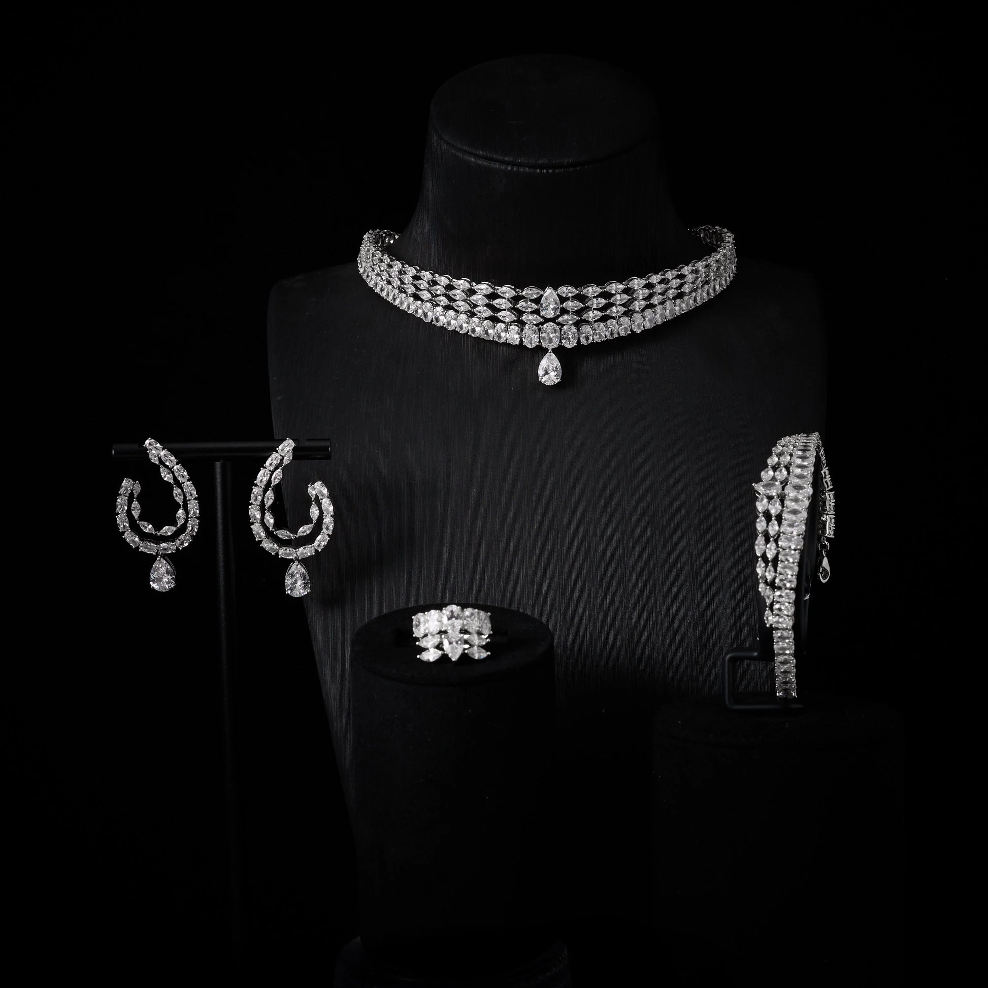 00044 Choker Necklace Sets for Women Cubic Zirconia Bridal Jewellery Set Dubai Saudi Party Engagement Accessory