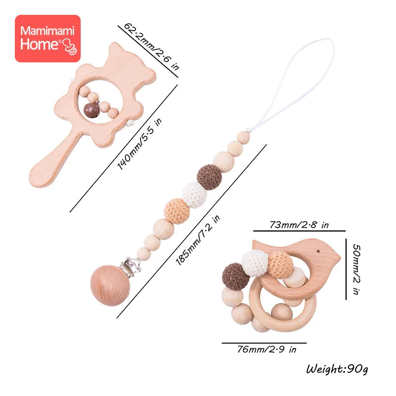 1 Set Baby Wooden Teether Crochet Beads Pacifier Chain Clip Wood Elephant Teething Bracelet Music Rattle Montessori Baby Product