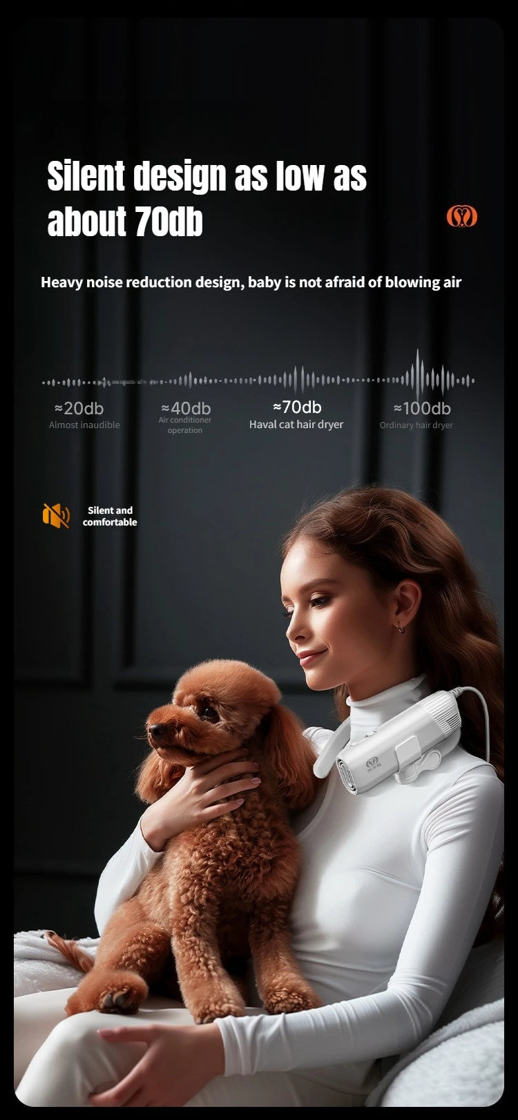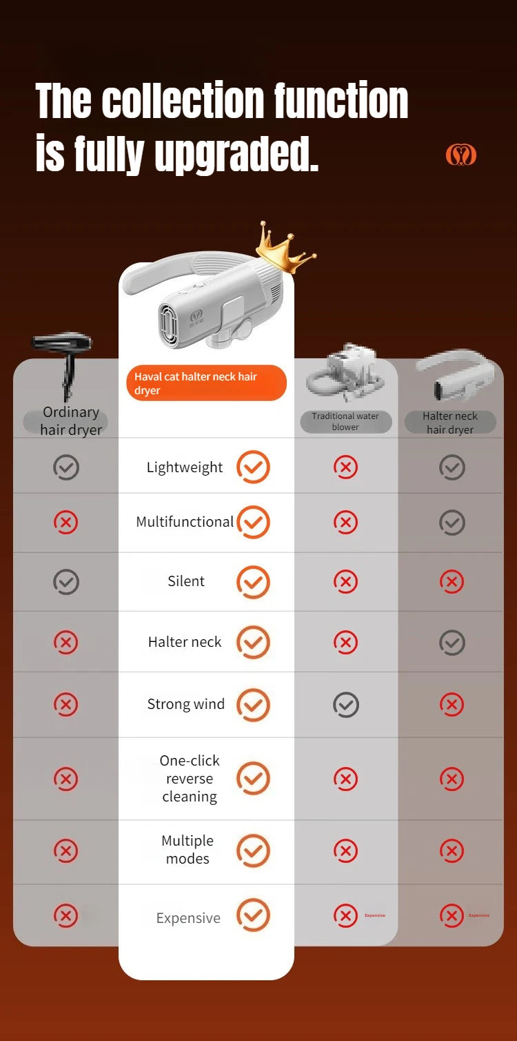 1400W EU Specific Pet Dryer Negative Ion 2-in-1 Hanging Neck/Handheld Hair Drying Blowing for Dog/Cat Bathing Drying&Shaping