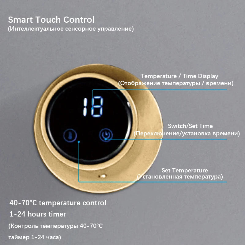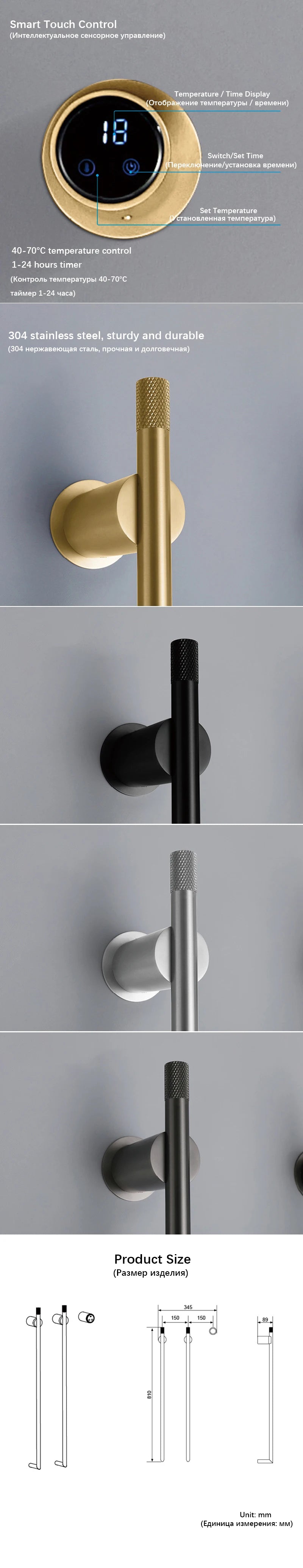 2025 Brushed Gold Bathroom Electric Bath Towel Rack Smart Temperature Time Control Towel Warmer Hidden Wires Heated Towel Rail