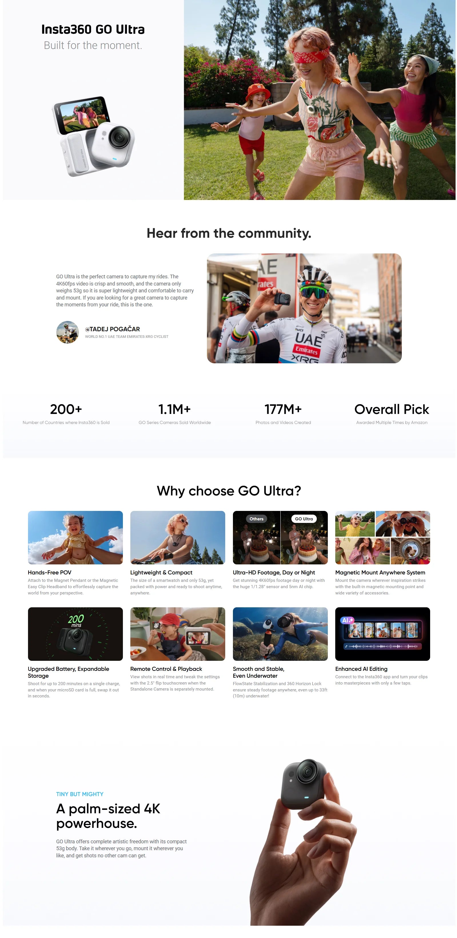 2025 NEW Insta360 Go Ultra Mini Camera 53g 1/1.28 Inch Image Sensor FlowState Wi-Fi GPS Insta 360 GO Ultra Action Sport Camera