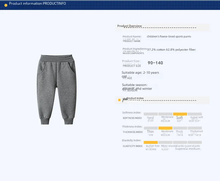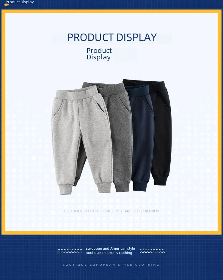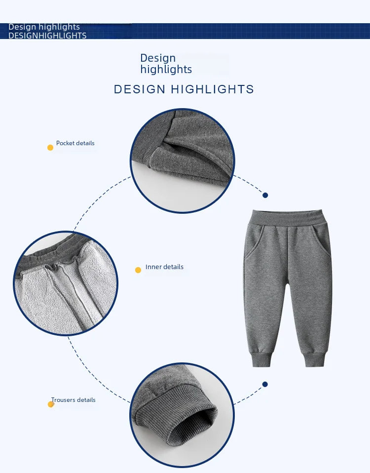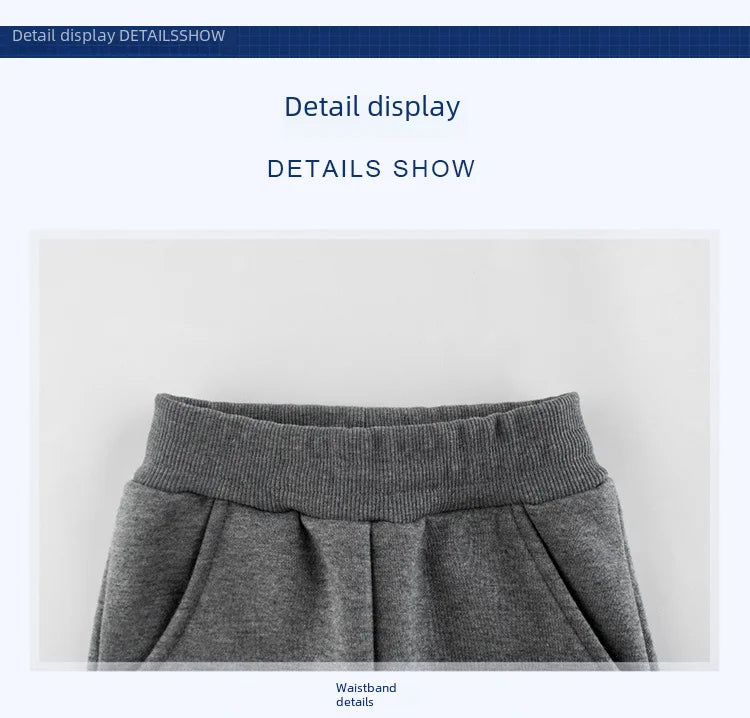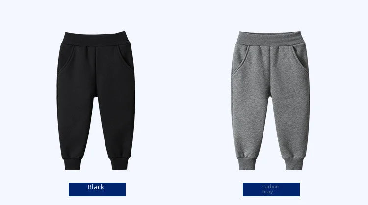 27kids Children Sports Long Pants Boys Flocking Casual Pants Pure Color Cotton Mixed Fabric Mid-waist Korean Style