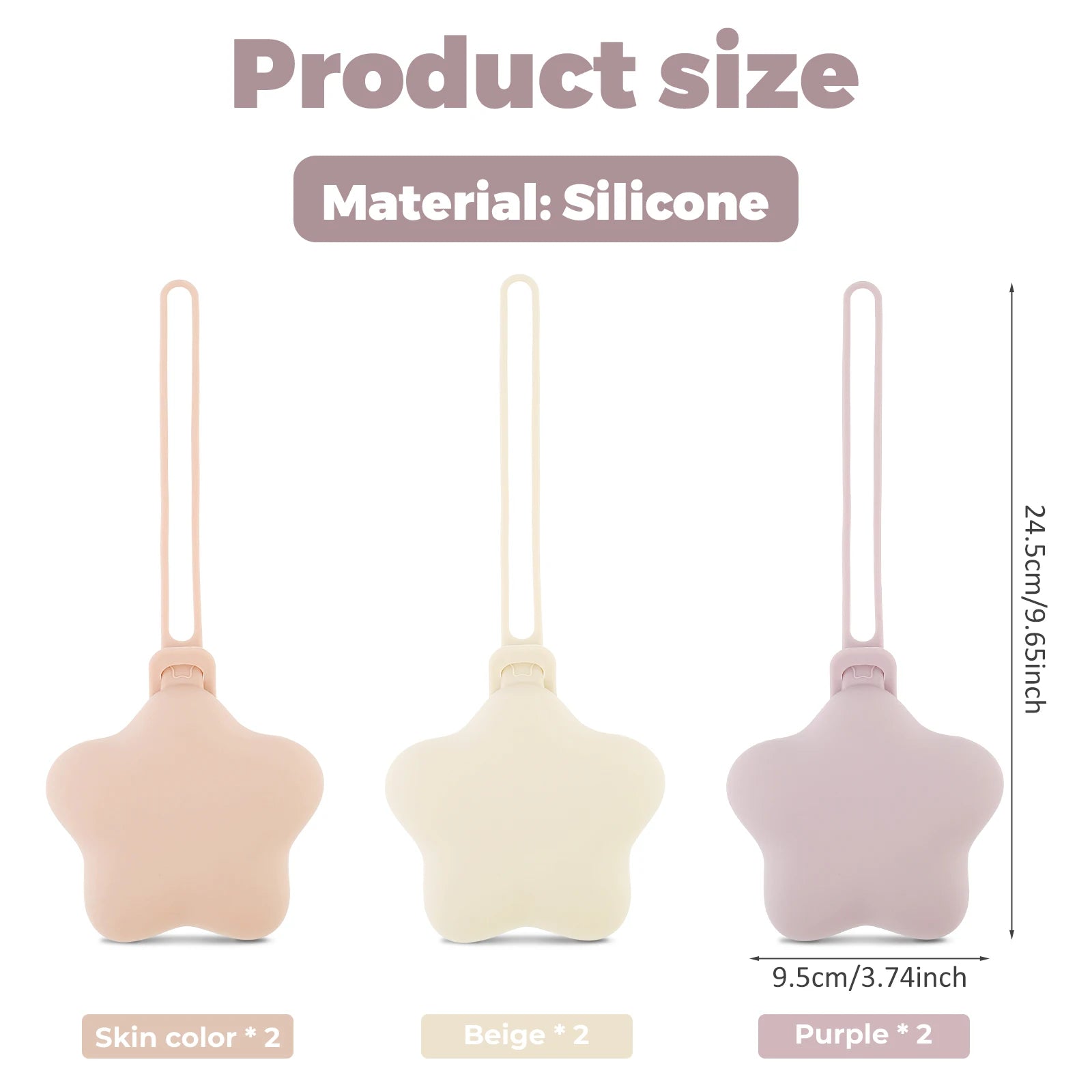 3/6Pcs Star Pacifier Storage Bag Silicone Dustproof Pacifier Holder Case Portable Baby Pacifier Chain Bag Baby Accessories