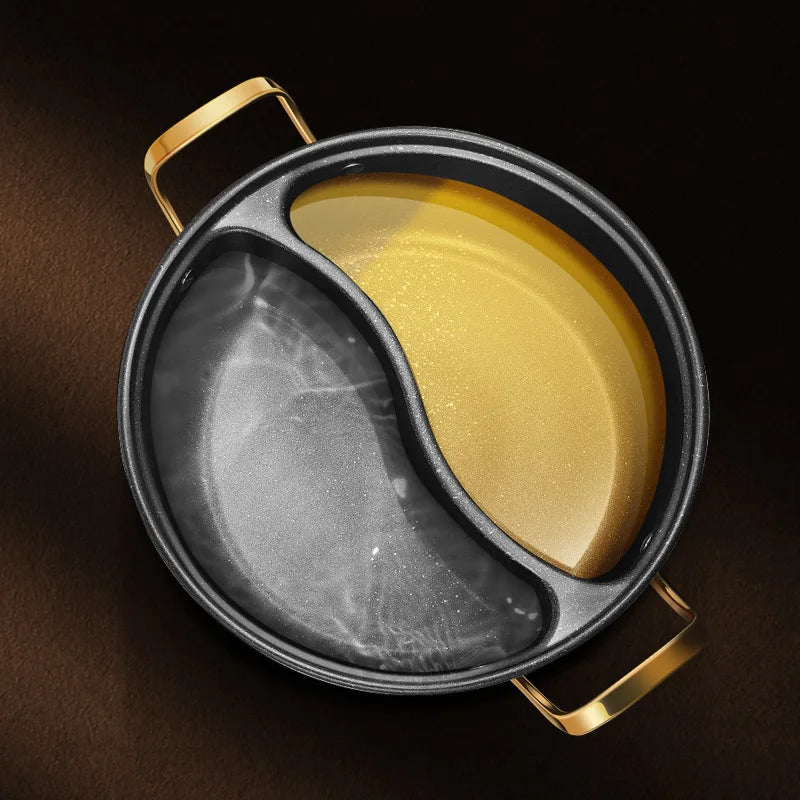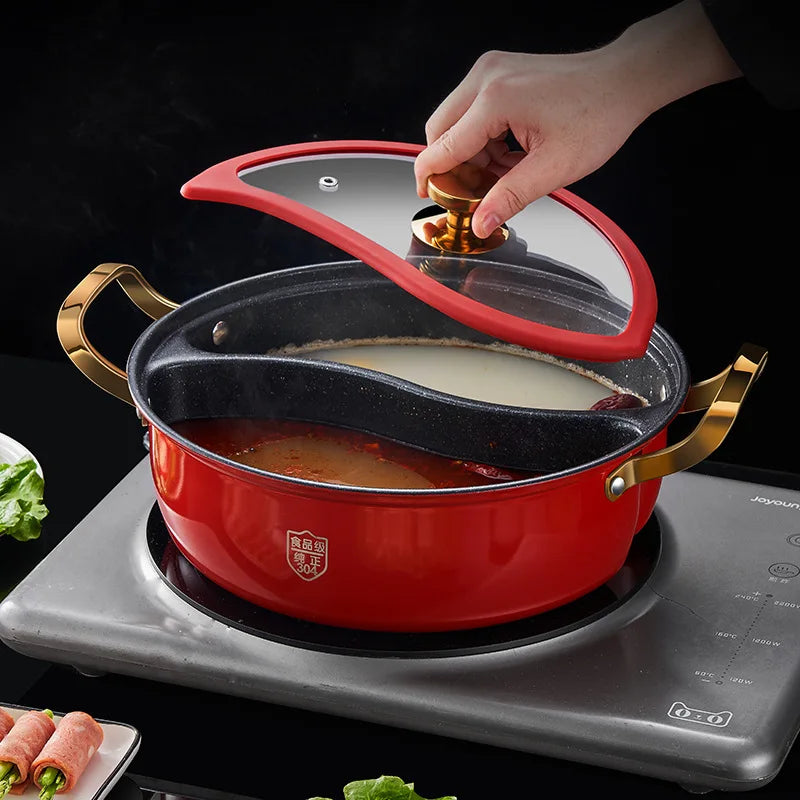 304 Stainless Steel Double-flavor Hot Pot with Lid Thickened Double Ear Soup Pot Household Induction Cooker Double Flavor HotPot