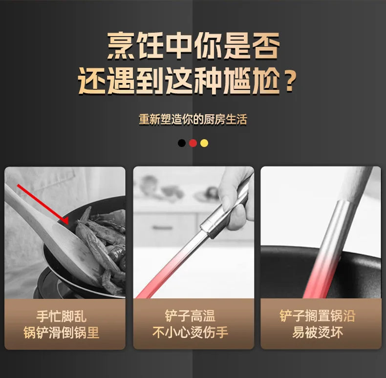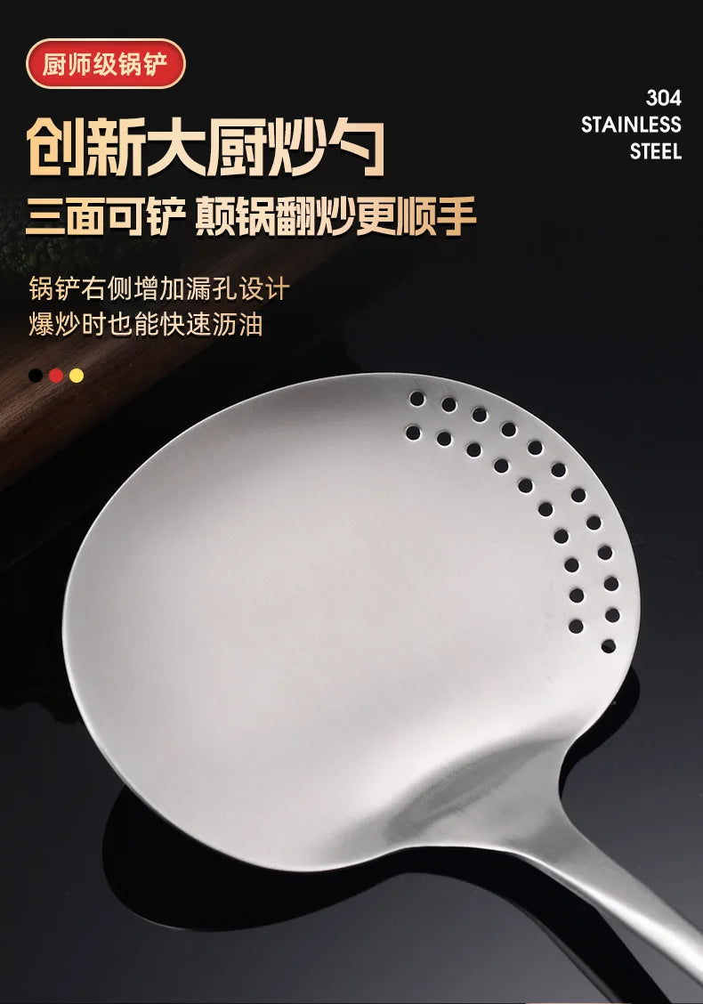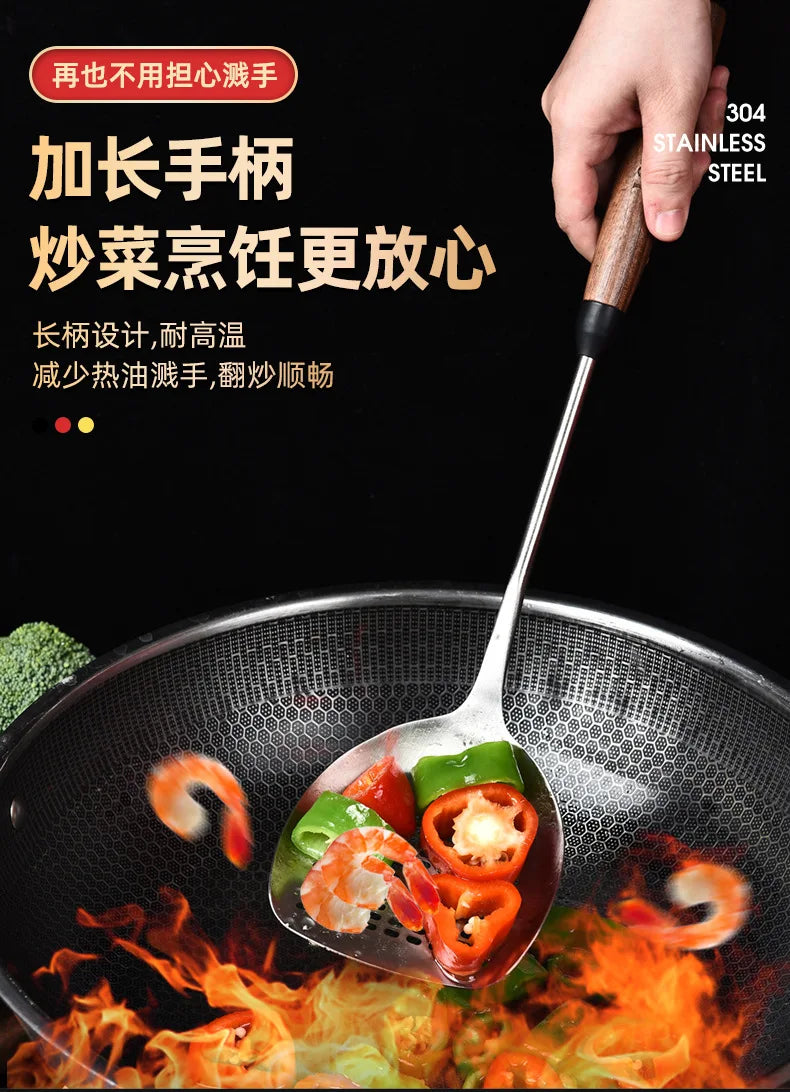 304 Stainless Steel Kitchenware Household Anti-scald Walnut Handle Cooking Spatula Set