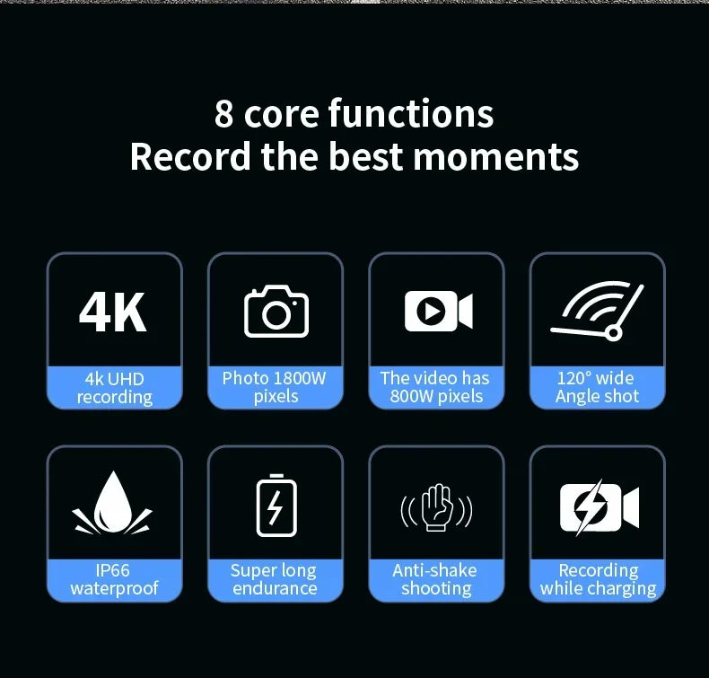 4K Full HD Wifi Portable Camera Waterproof and Anti Shake Sports Cameras Bicycle Motorcycle Helmet Cam Flashlight Camcorder