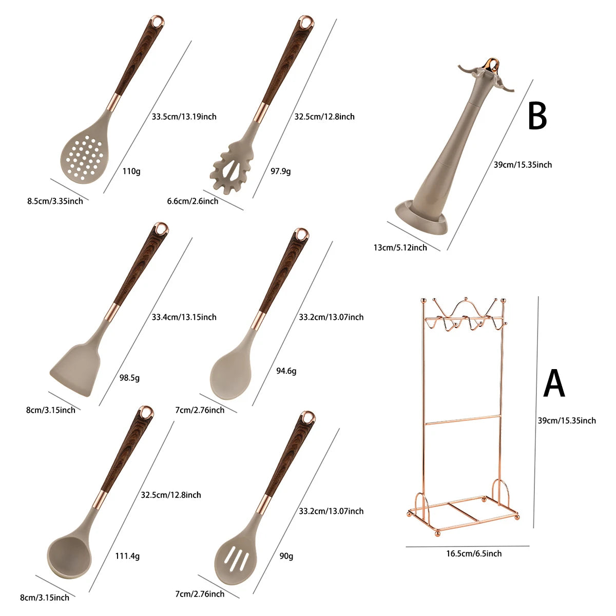 8pcs Silicone Kitchenware Set Pot Shovel Soup Spoon Spaghetti Claw Cooking Set with Storage Rack Household Kitchen Tools Set