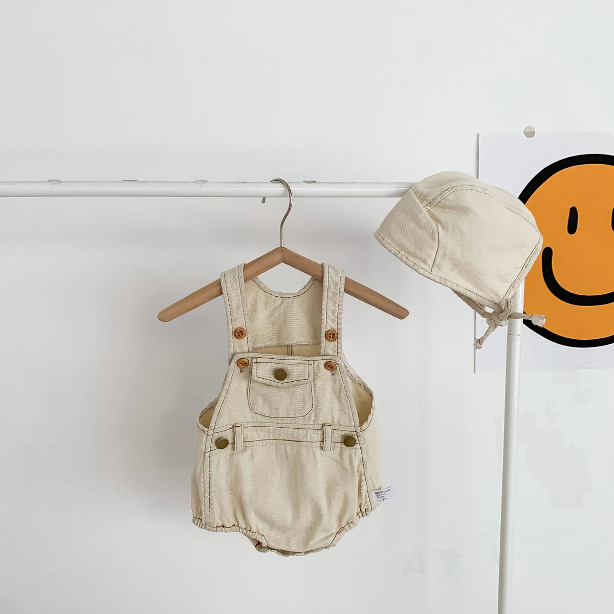 Baby Clothes Denim Sling Romper Infant Onesie Newborn One-piece 0-3 Years Old Complimentary Hat