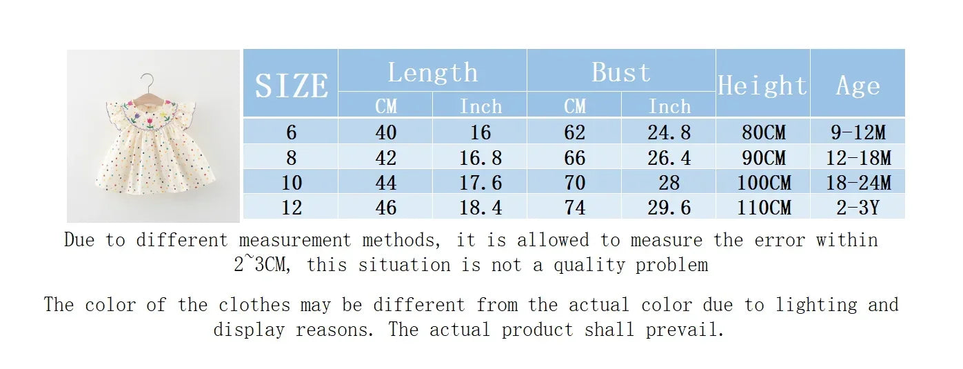 Baby Girl Dress Summer Colorful Polka Dot Flower Embroidery Girls Princess Dress Cute Girls Beach Dresses