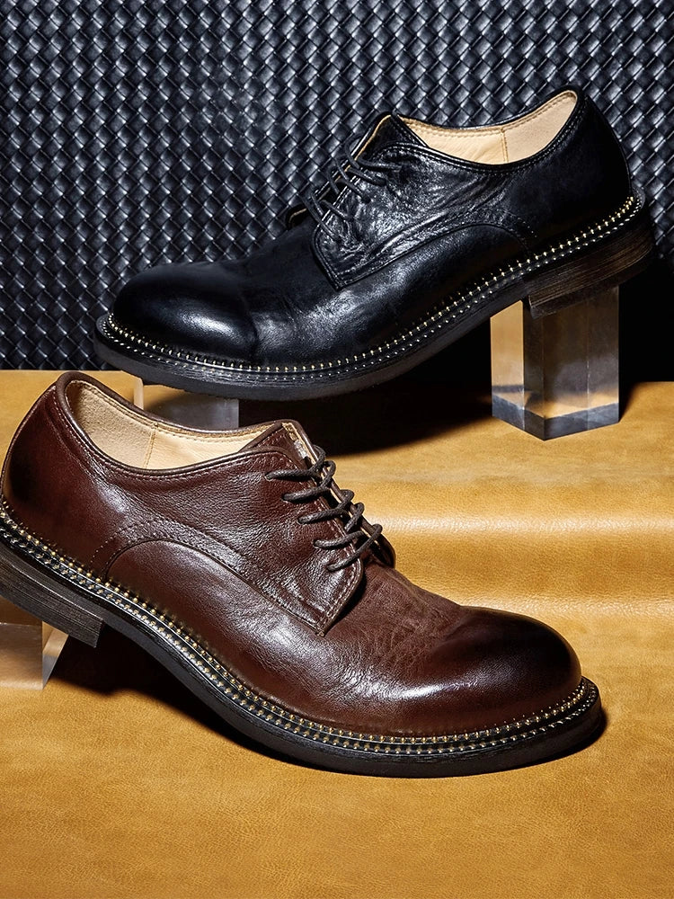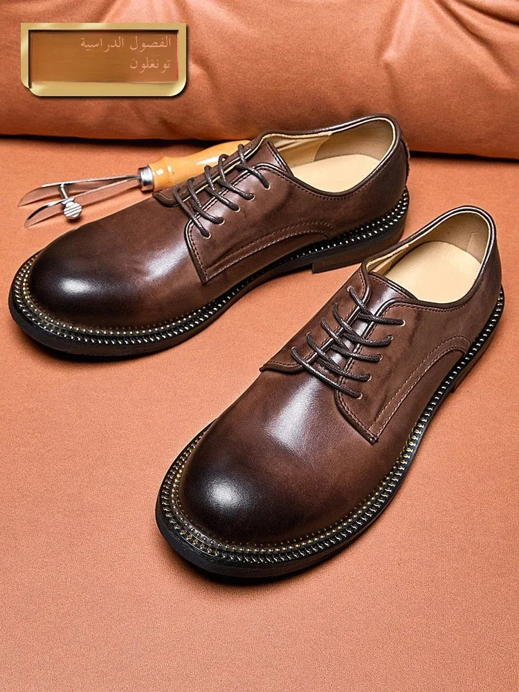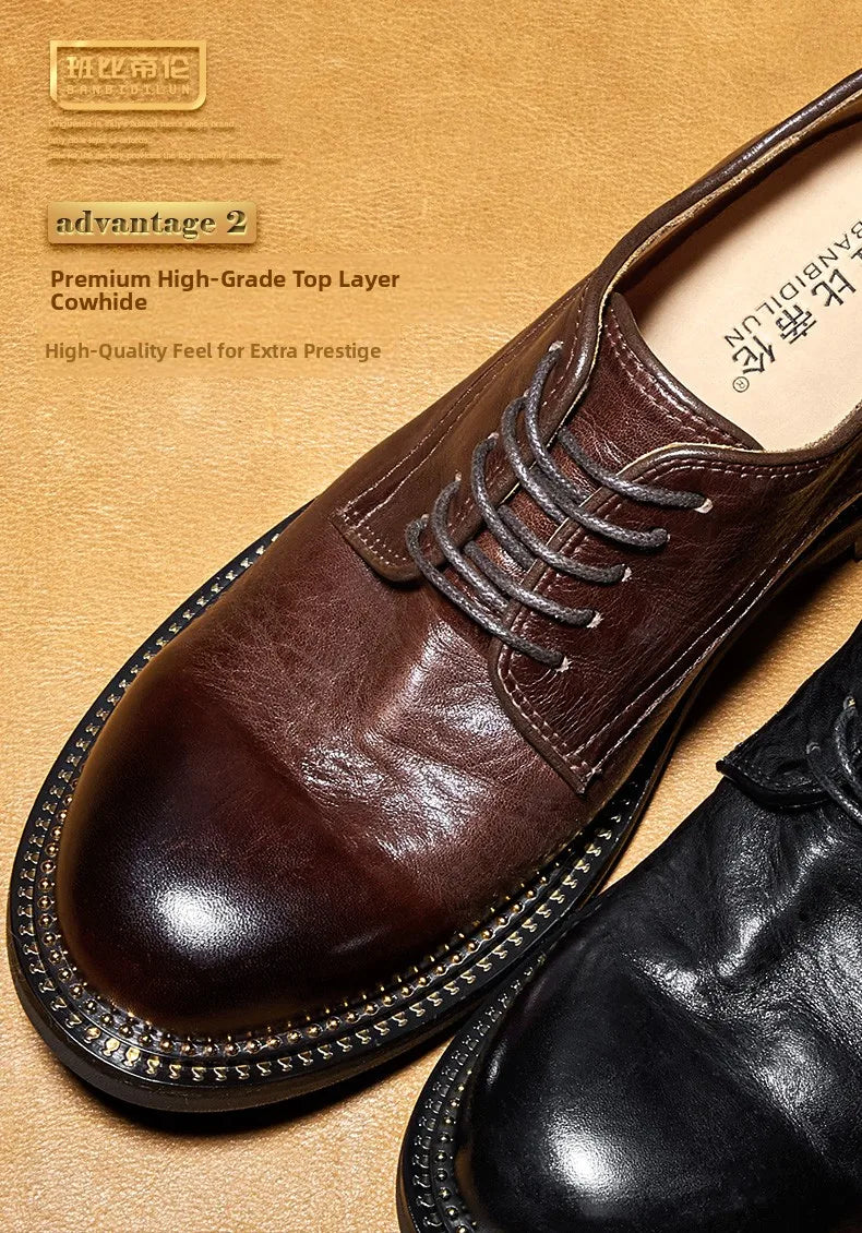 Bambi Deloren Handmade Leather oes Men's Casual Briti Retro Busin oes Wear-Resistant Lace-Up round Toe Rubber ...