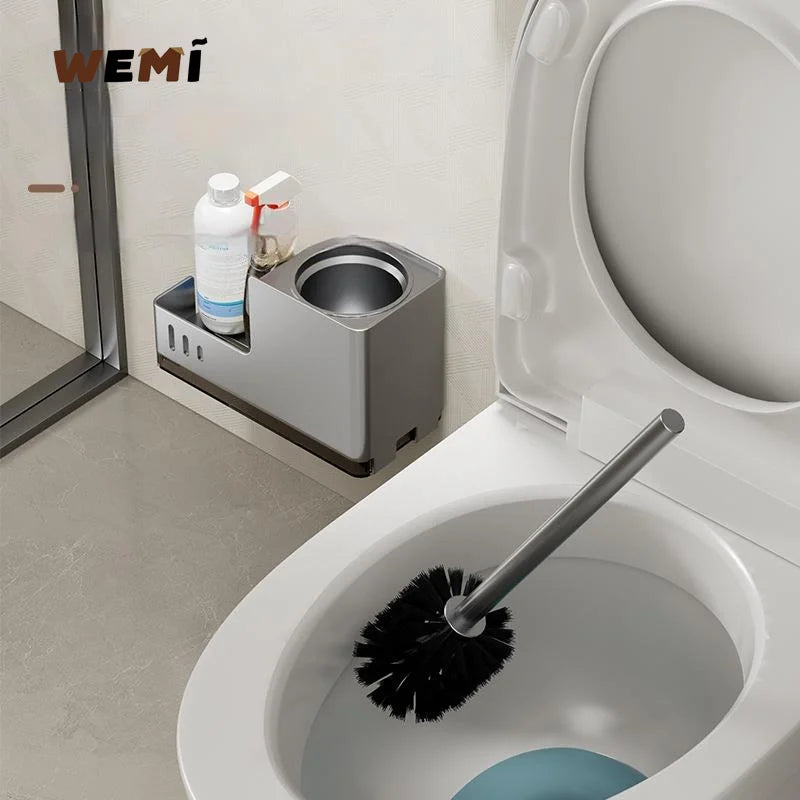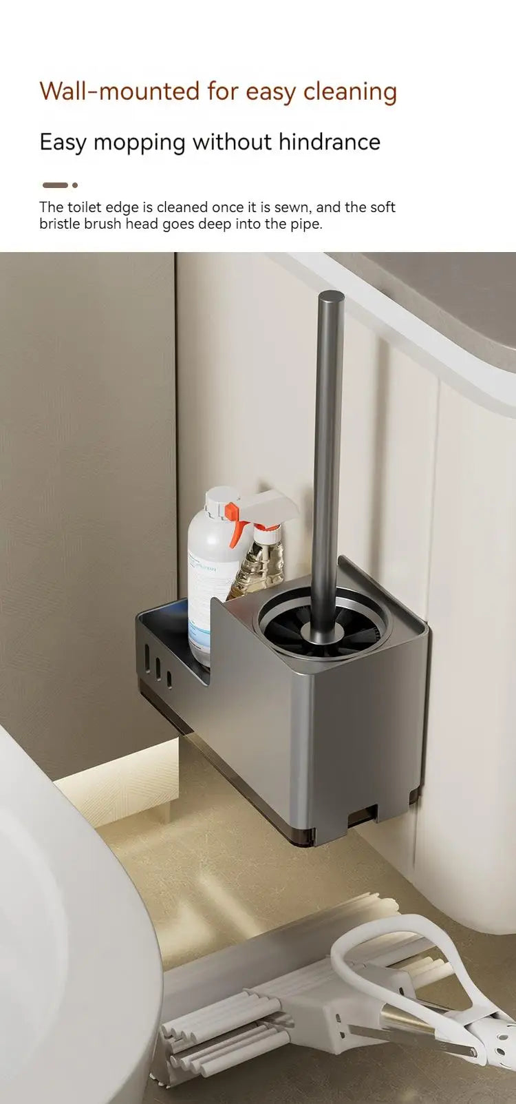 Bathroom Toilet Brush Holder Cleaning Tools Space Aluminum Wall Mounted No Drill Vertical Toilet Brush Bathroom Accessories