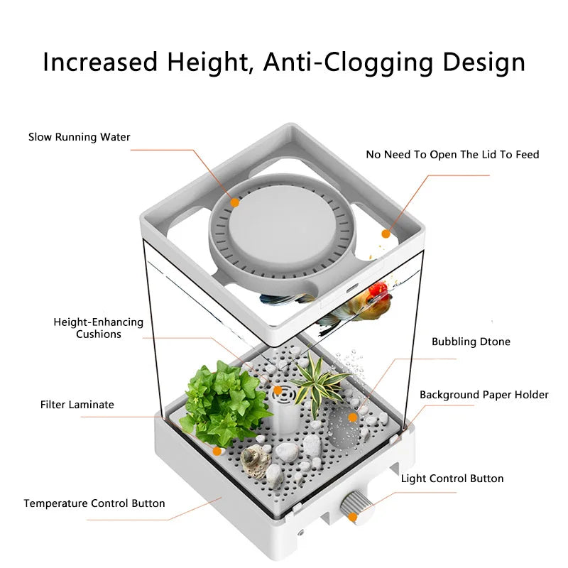 Betta Fish Tank Multifunctional Intelligent Fish Tank Temperature Control Digital Display Aquarium with RGB Ecological Light