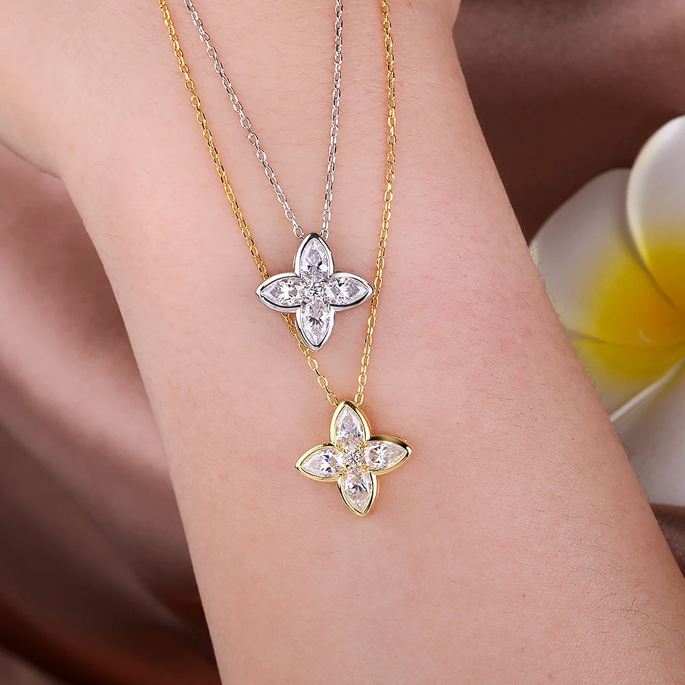 Bezel Set Full Moissanite Flower Pendant Necklace for Women Sparkling Pear Cut Diamond Pendant S925 Silver Wedding Party Jewelry