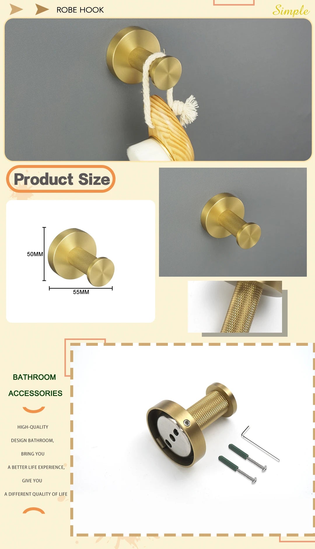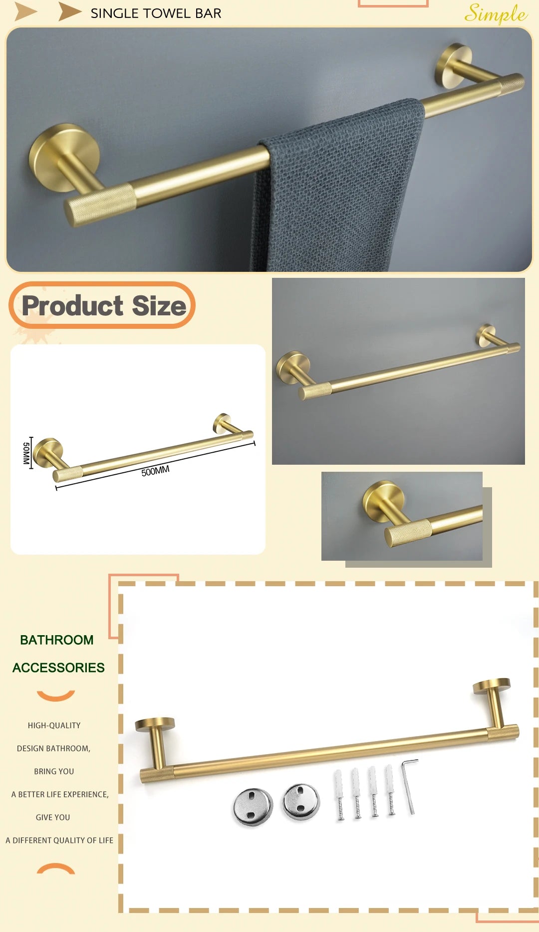 Brushed Gold Stainless Steel Wall Mount Towel Bar Towel Ring Paper Holder Bathrobe Hook Toilet Brush Bathroom Accessories
