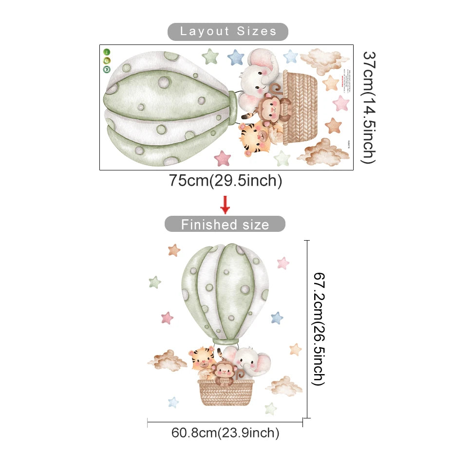 Cartoon Hot Air Balloon Animals Bear Rabbits Wall Stickers for Child Room Boy Room Decoration Nursery Baby Room Decoration Decal