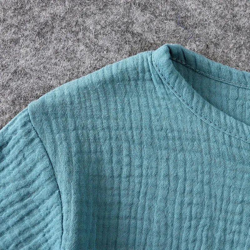Cotton Linen Kids Clothes Girls Outfit Summer Boy Clothing Sets Solid Color Short Sleeve Tops Shorts Children Clothing 2-7 Years