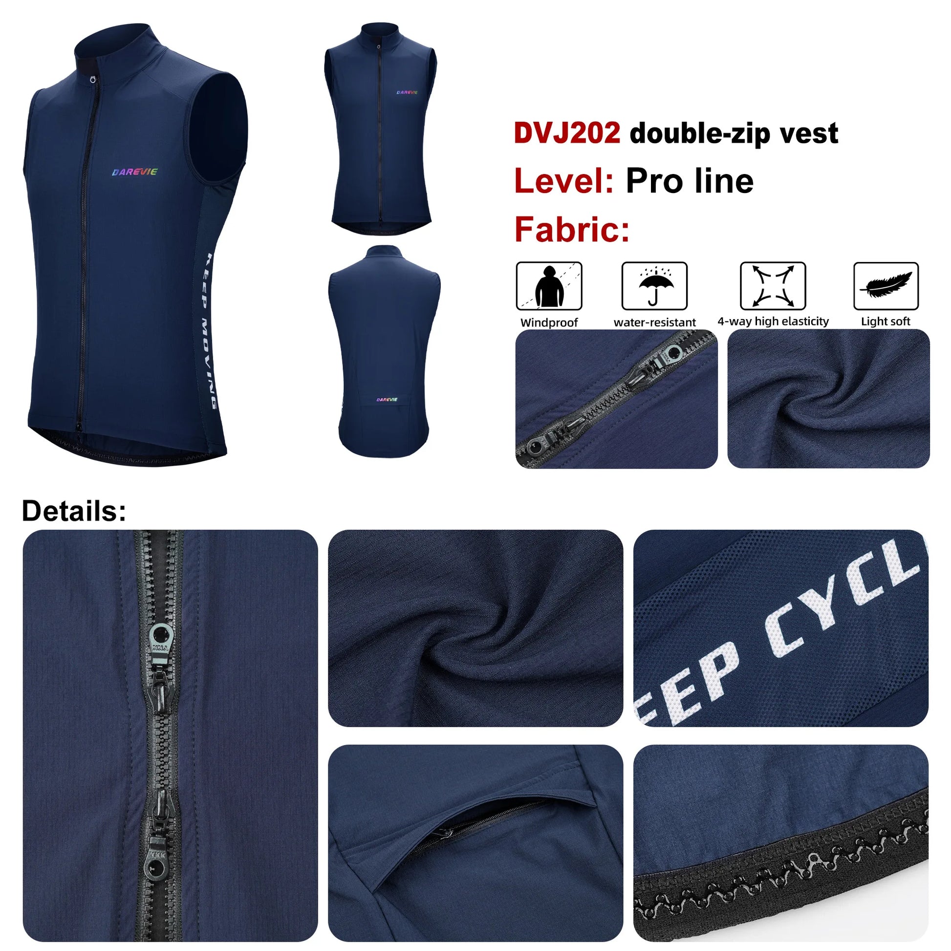 DAREVIE Cycling Vest Windproof Cycling Wind Gilet Waterproof 2 Way Zippers Cycling Windbreaker Back Zipper Pockets Men Women