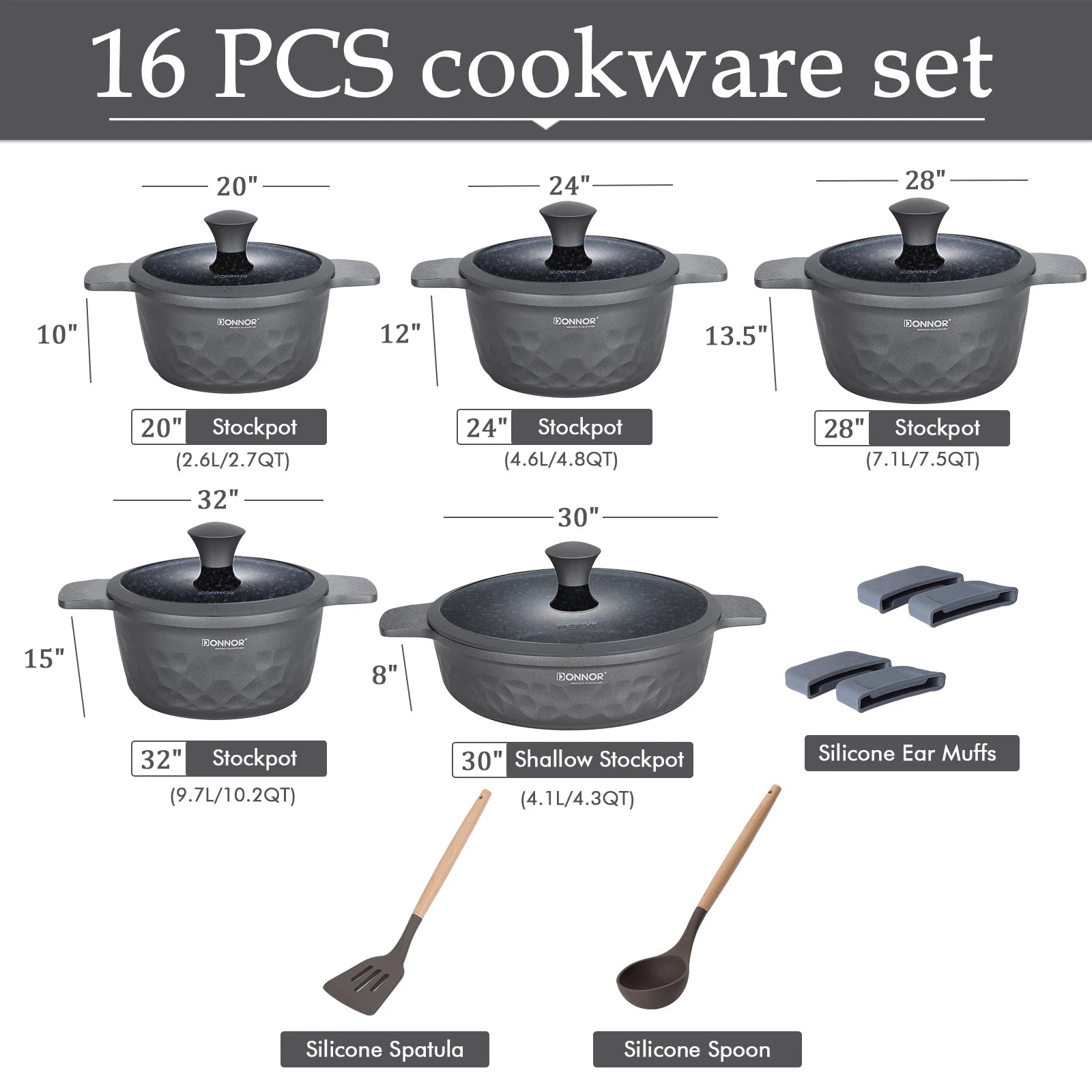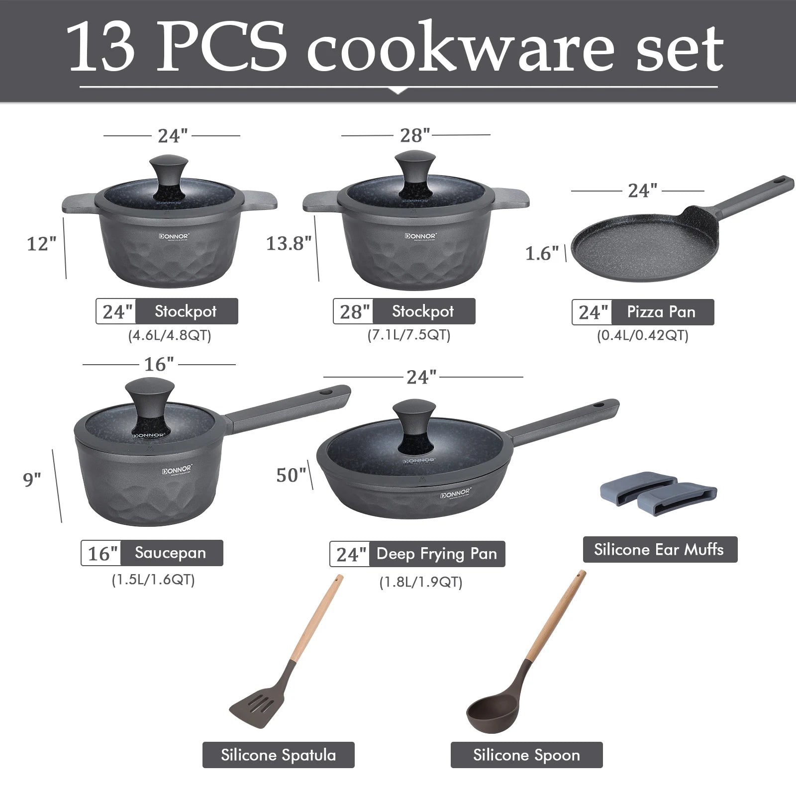 DONNOR Kitchen Cooking Set 12 Pcs Pots and Pans Set Non-toxic Healthy Pots and Pans Set Non Stick Saucepans Steamer Set