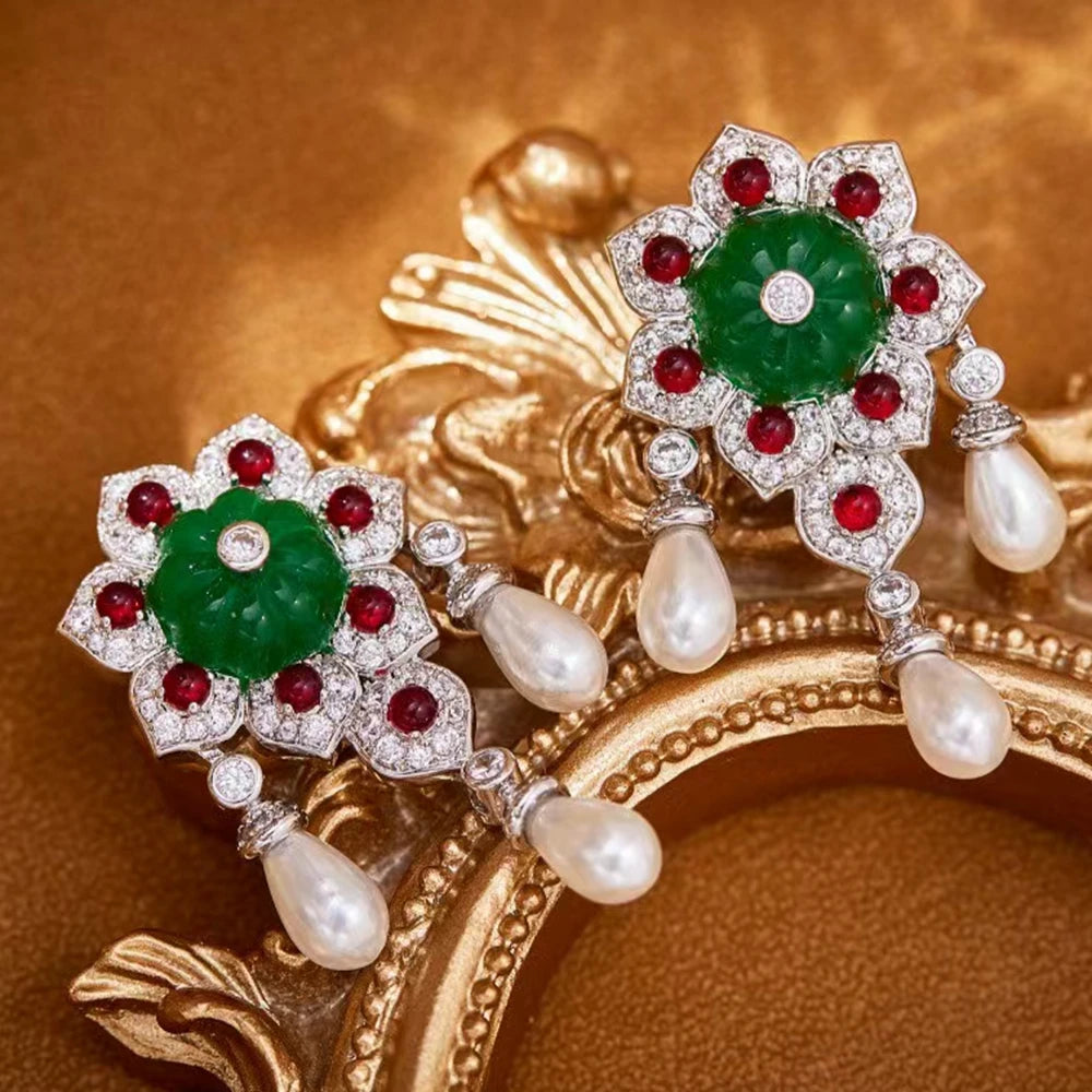 Dubai Fashion White Pearl Sythetic Green Chalcedony Tassel Beads Chain Necklaces Earrings Luxury Designer Jewelry for Women