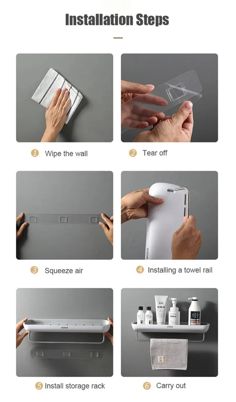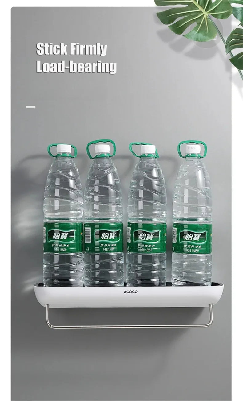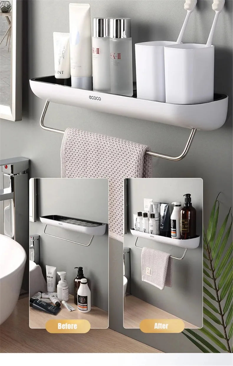 ECOCO Bathroom Shelves Organizer Storage Rack Wall Mount Towel Shelf Shampoo Rack with Towel Bar Rack Kitchen Accessories
