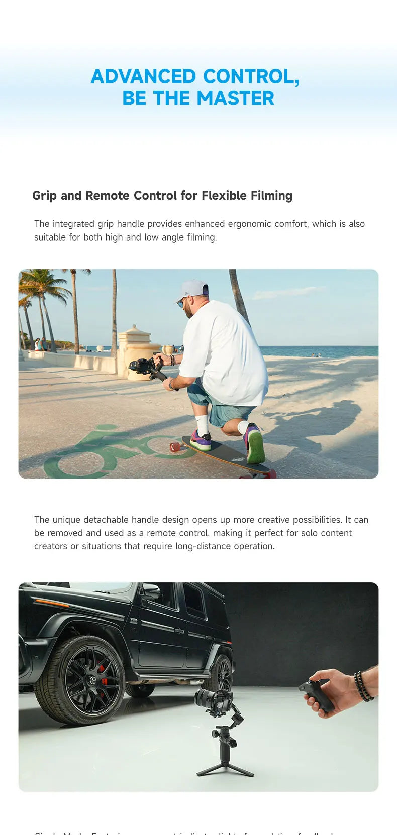 FeiyuTech SCORP Mini 3 Pro Gimbal with Detachable Remote Handle & AI 4.0 Tracking for Mirrorless, Action Camera & Smartphones