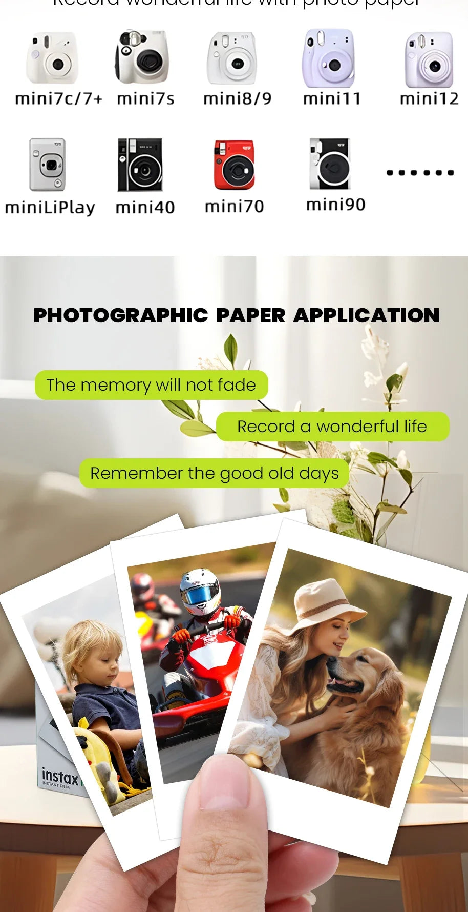 Fujifilm Instax Mini Film White Edge 3 inch Paper for Fuji Instant Film Camera Mini 12 11 9 8 40 70 90 Link 2 EVO 10-100 Sheets
