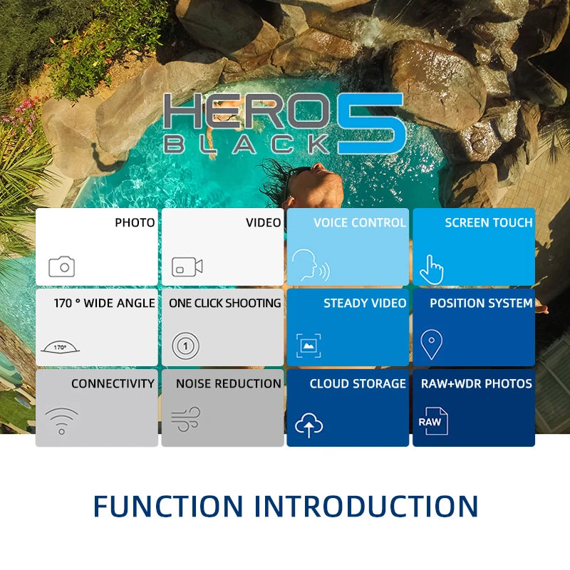 GoPro HERO5 Black Sports Camera 4k Ultra HD Video 1080P Anti Shake Cycling Helmet Go Pro Camera Optional Memory Card