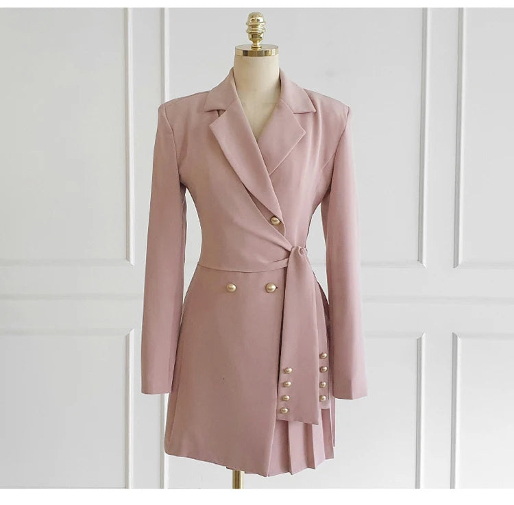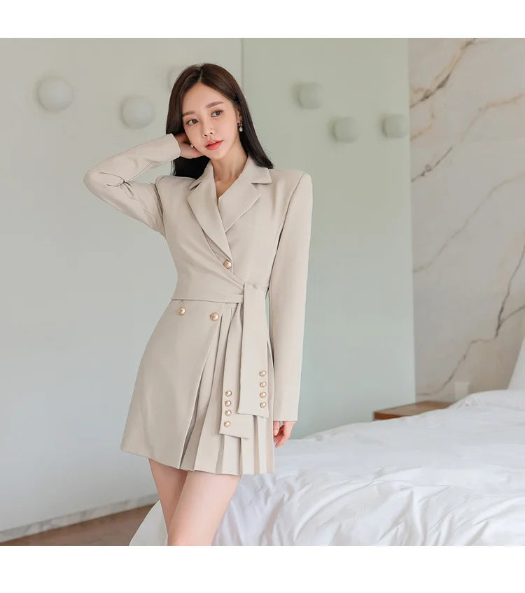 H Han Queen Autumn Winter Dresses Korean Lace-Up Professional Jacket Vestido Elegant Fashion Slim Office Party Casual Dress
