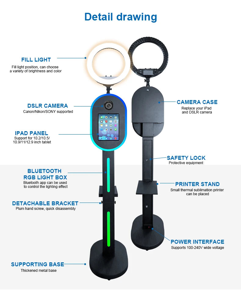 Hot Sale 10.2" 11" 12.9" iPad photo booth stand Selfie Photo Booth Shell for Ipad and DSLR with Ring Light for Birthday Party