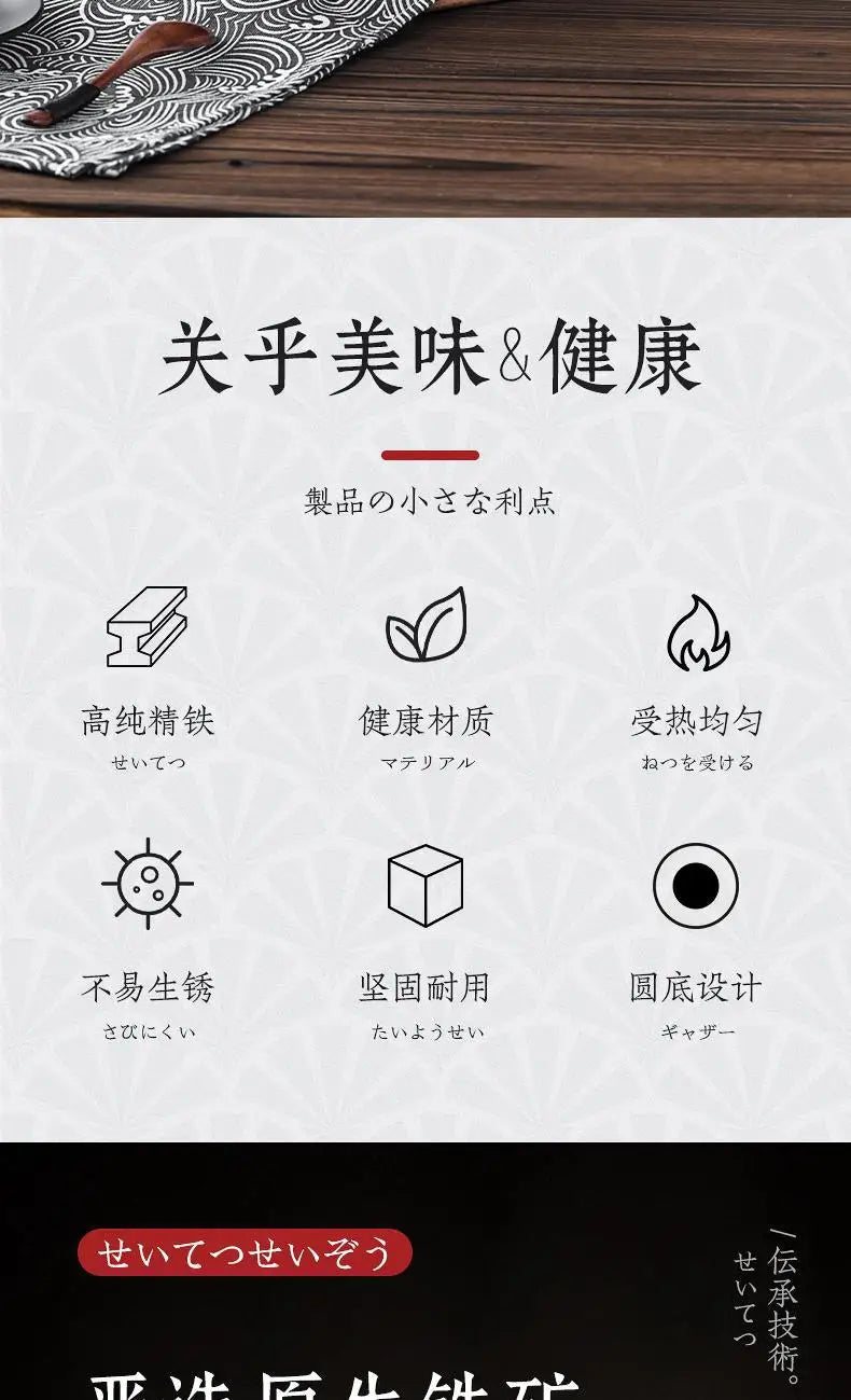 Japanese Iron Pan Wok Frying Pans, Flat Bottom Cast Iron Pans Are Convenient for Induction Cookers and Gas Stoves