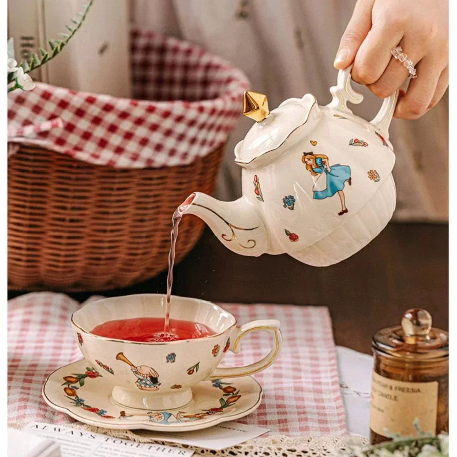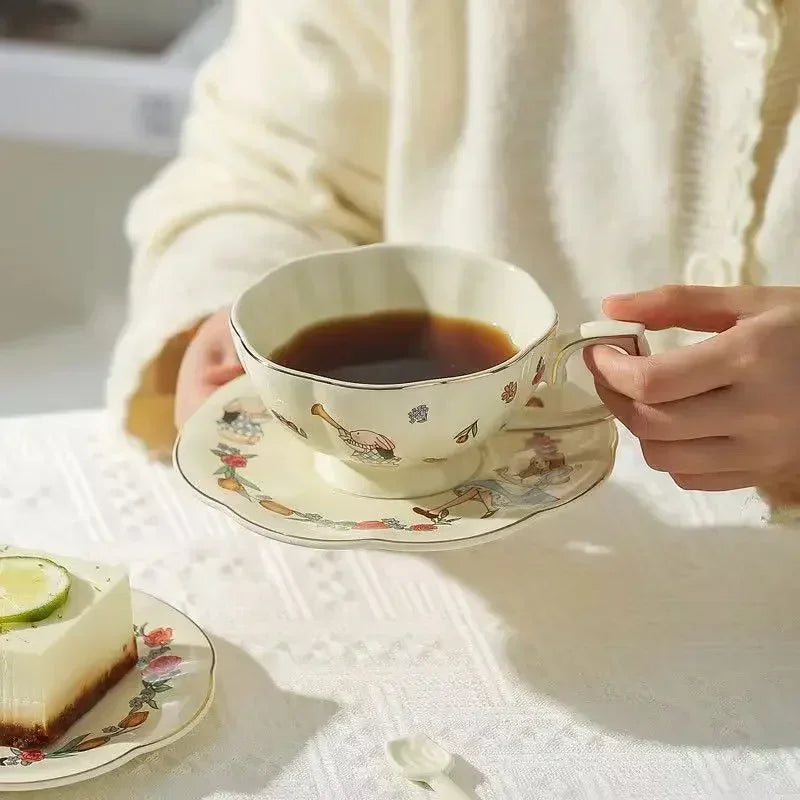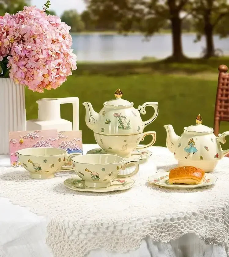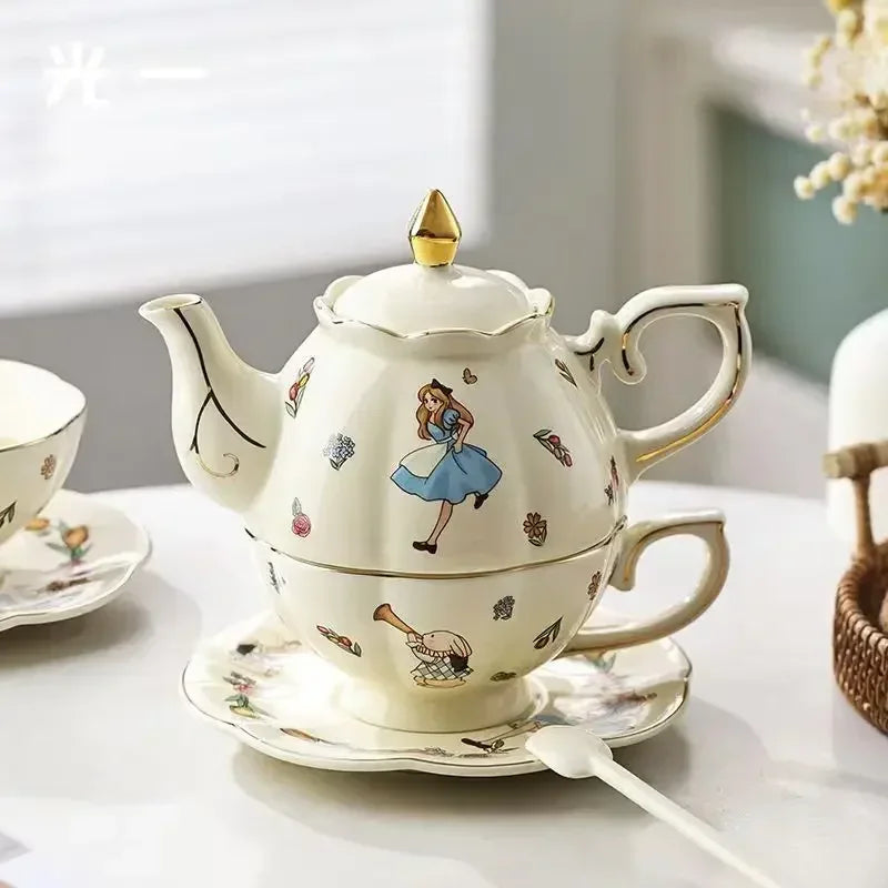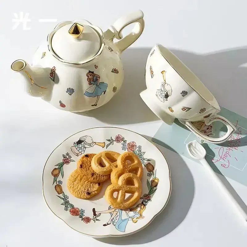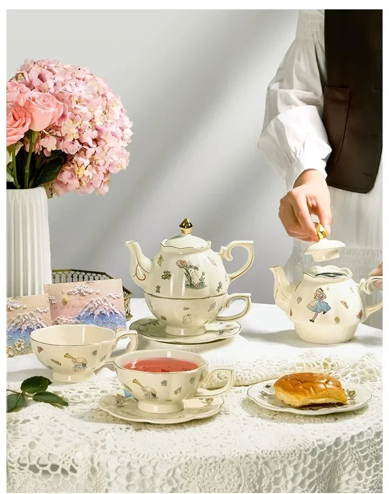 Luxury Ceramic Teapot Gift Box Cup and Pot Girl and Rabbit Ceramic Teapot Coffee Cup Dish Set Birthday Gift for Tea Lovers