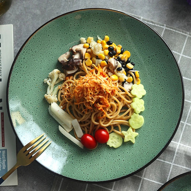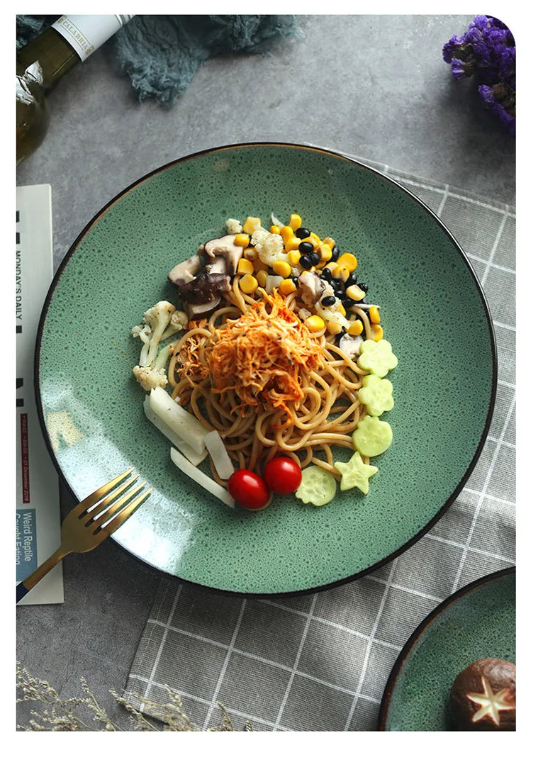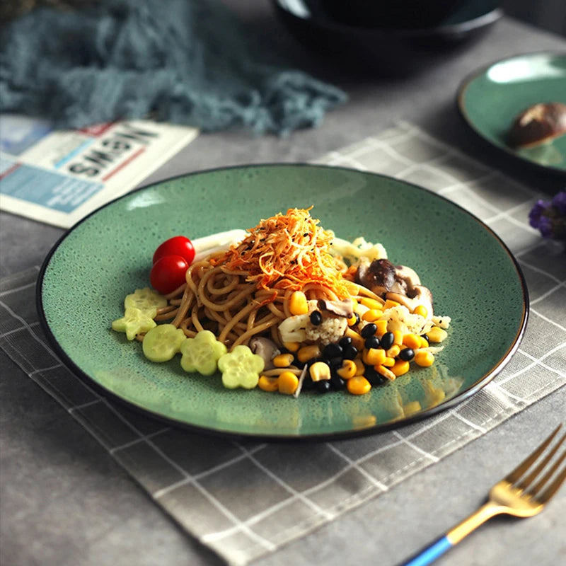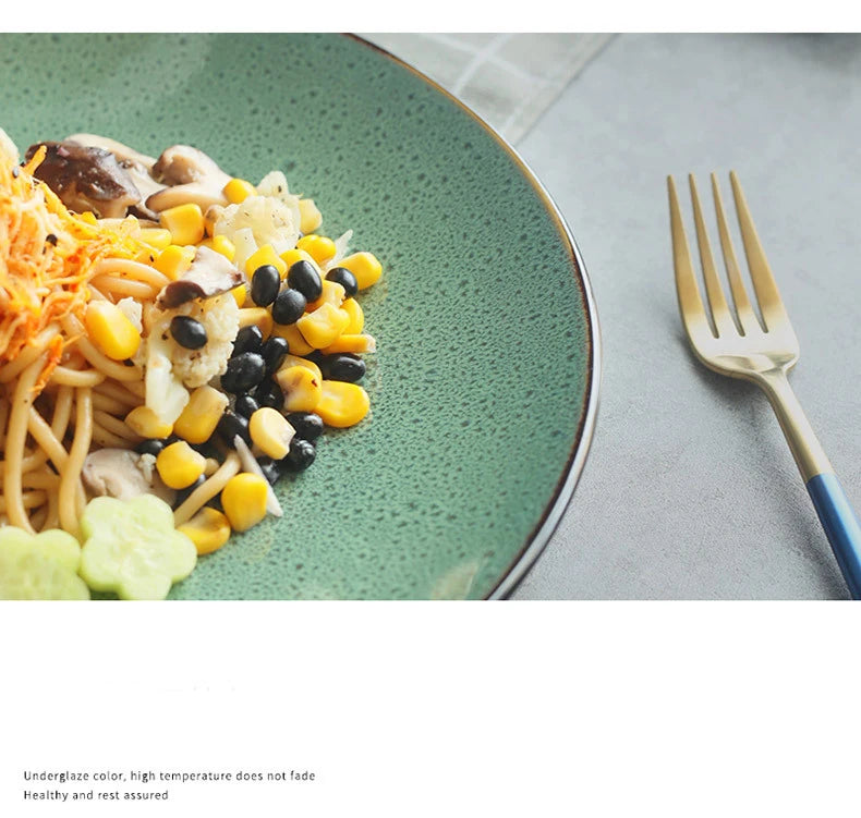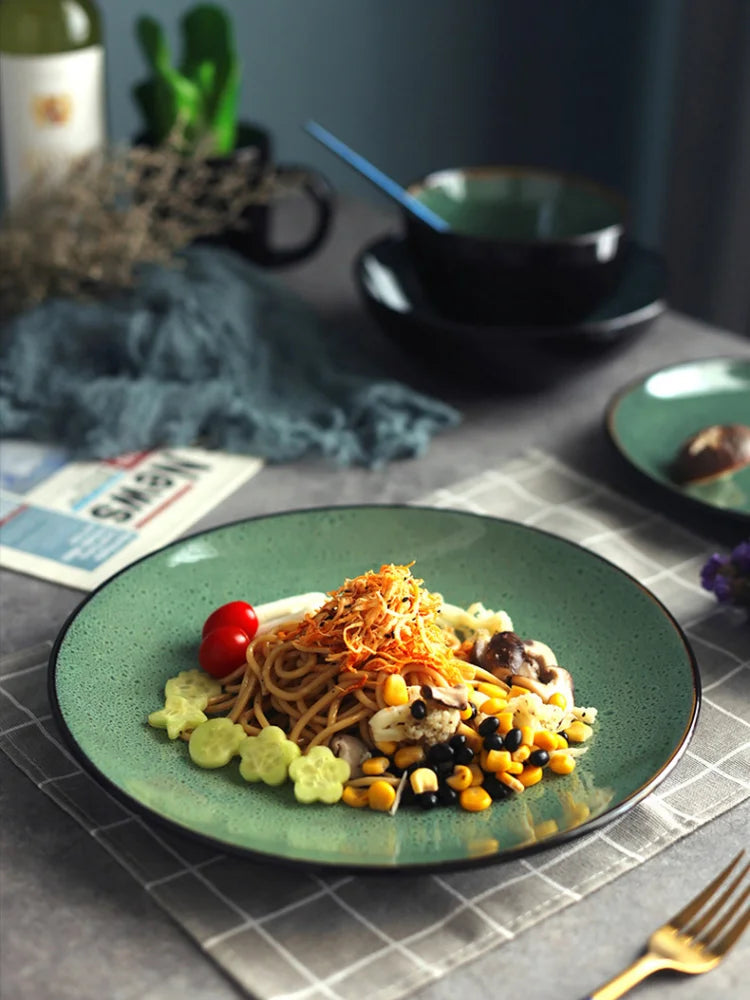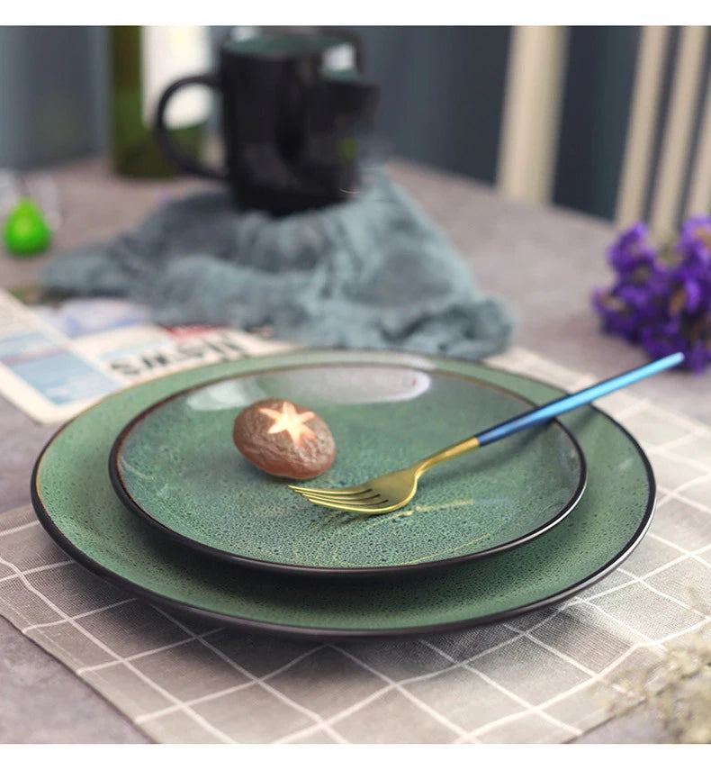 Malachite Green Ceramic Plates And Bowls Set Eco Friendly Porcelain Dinner Cutlery Set Kitchen Dish Plate Spoon Accessories