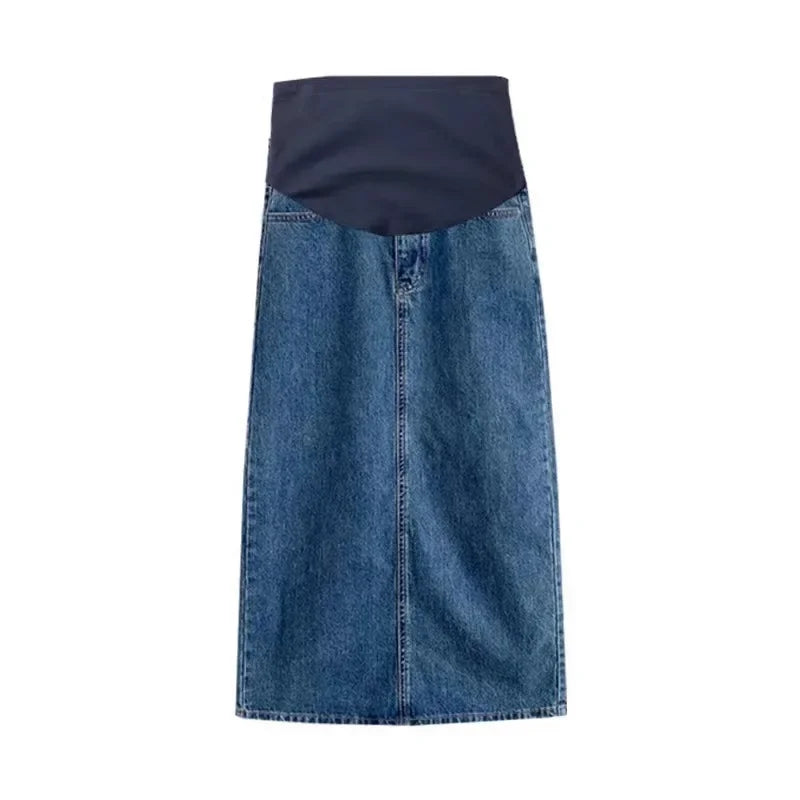 Maternity Skirt For Pregnant Women Denim Cotton Side Slit Medium Length Slimming Outerwear For Summer Spring Autumn