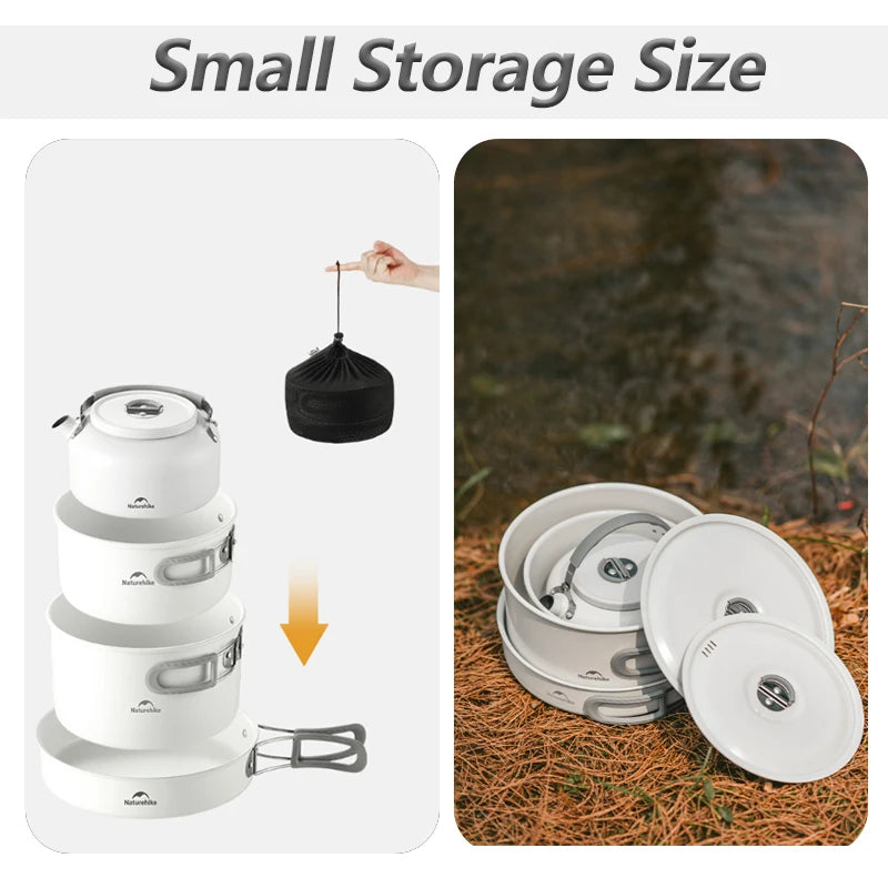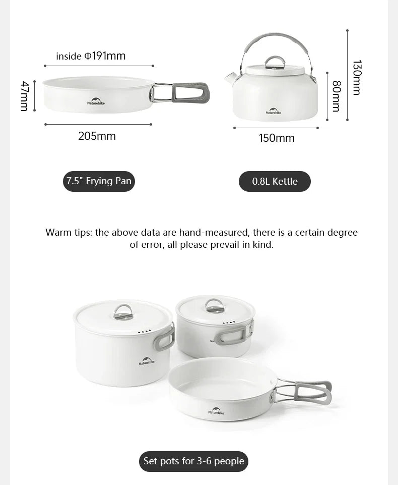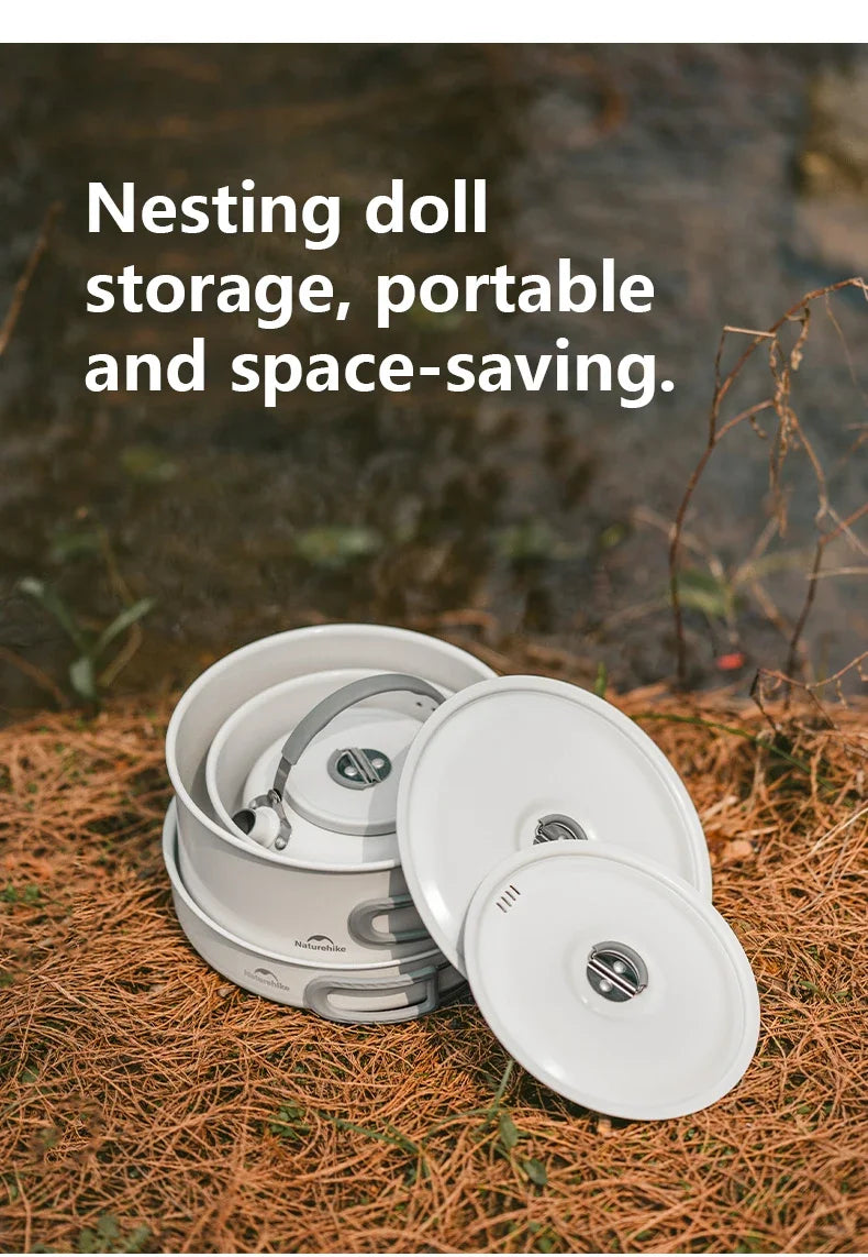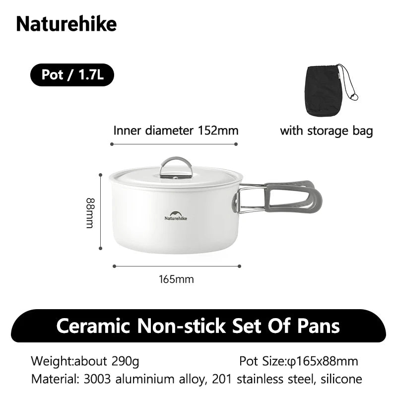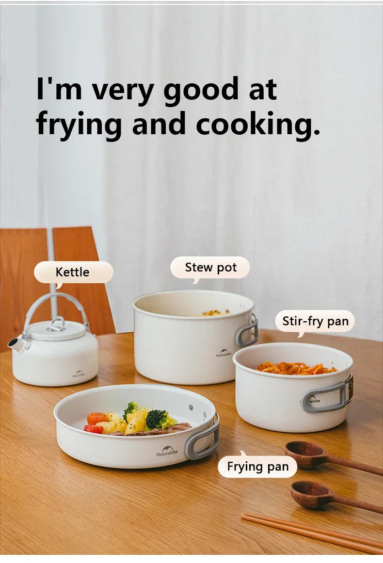 Naturehike Camping Cookware Ceramic Non-Stick Set Of Pots Outdoor Portable Tableware Kettle Frying Pan Cookset Kitchen Utensils