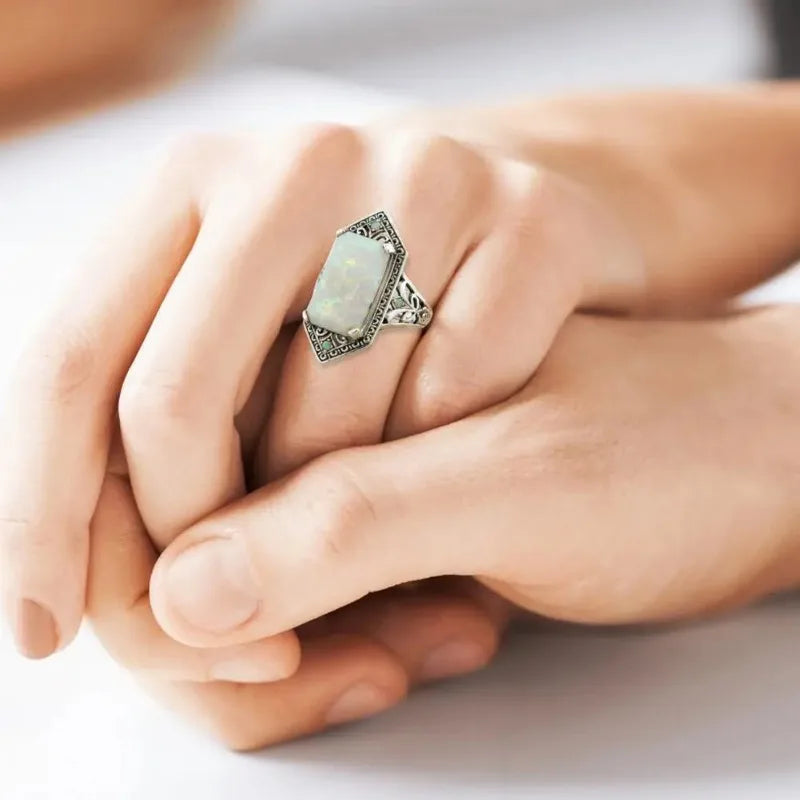 New Fashion Square White Opal Ring for Women Vintage Turquoise Rectangular Faux Gem Ring Jewelry Gifts Женская Бижутерия Тренд
