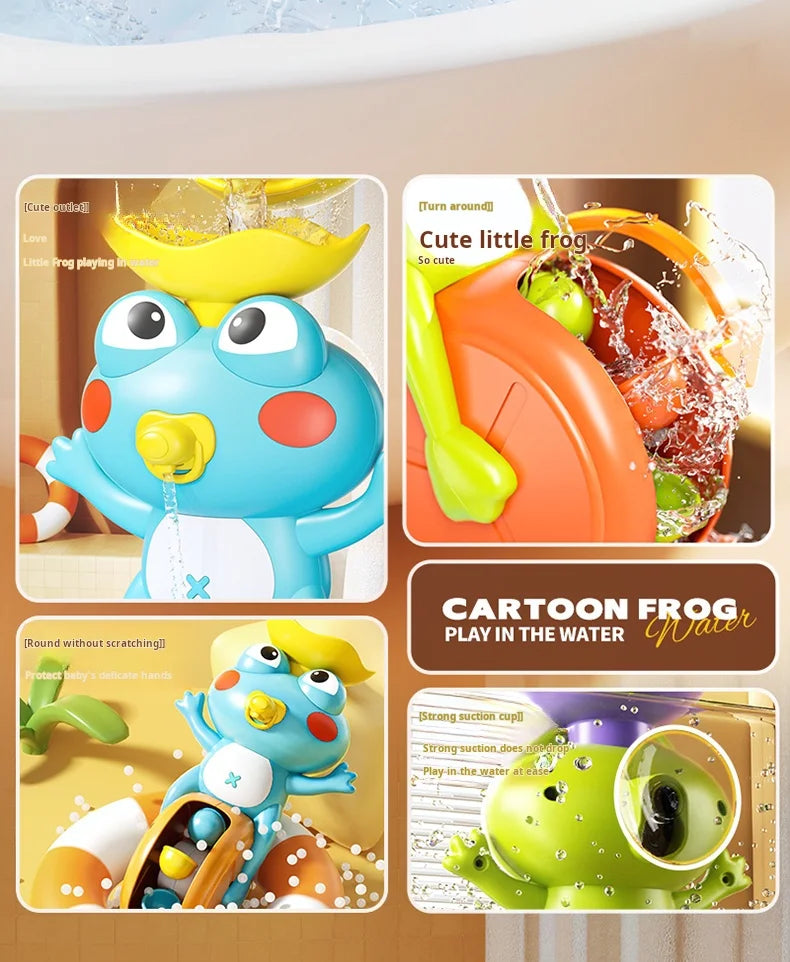 New Frog/ Bird Waterwheel Bath Toy for Children Kid Water Play Game in Shower Montessori Gift Spinner with Suction Cup Bathroom