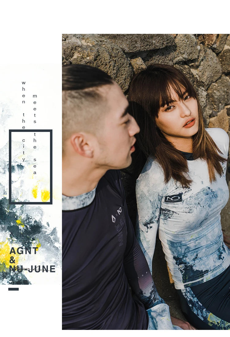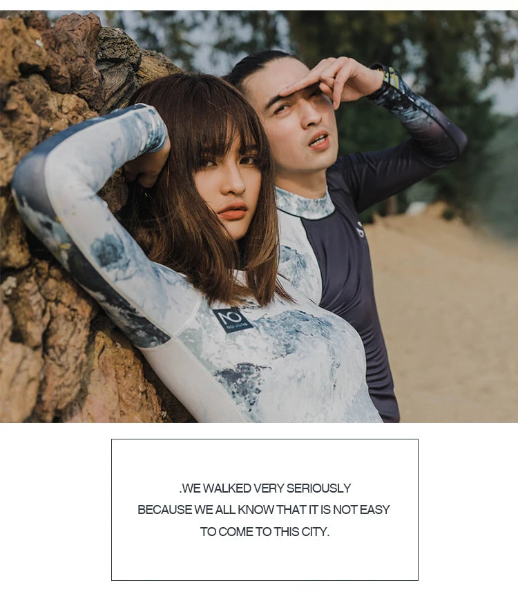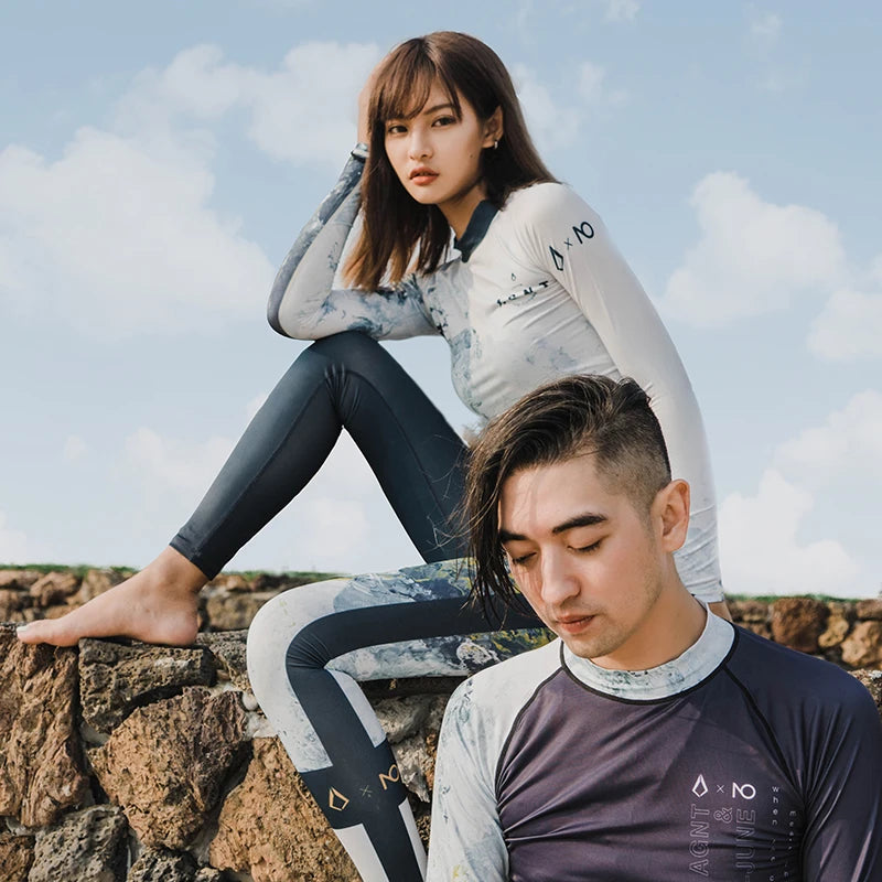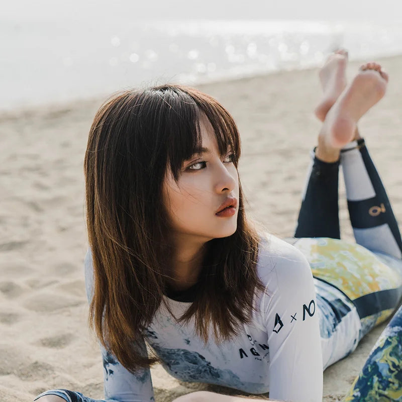 Nu-June Women Long Sleeve Rashguard Swimwear Print Surfing Top Diving Shirt Quick Dry Running Biking Rash Guard UPF50+ Swimsuit