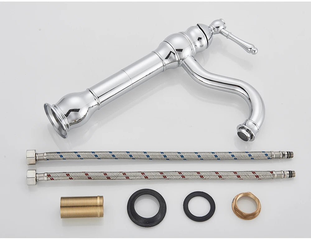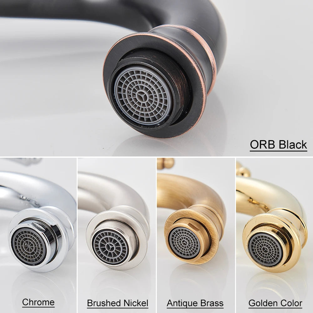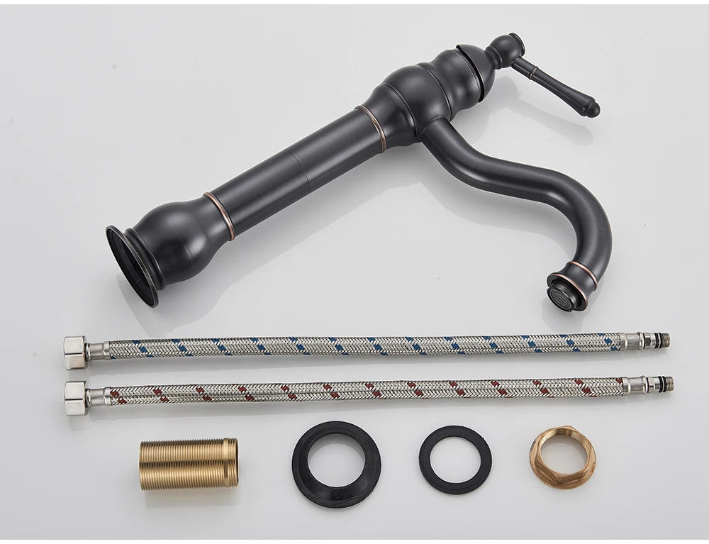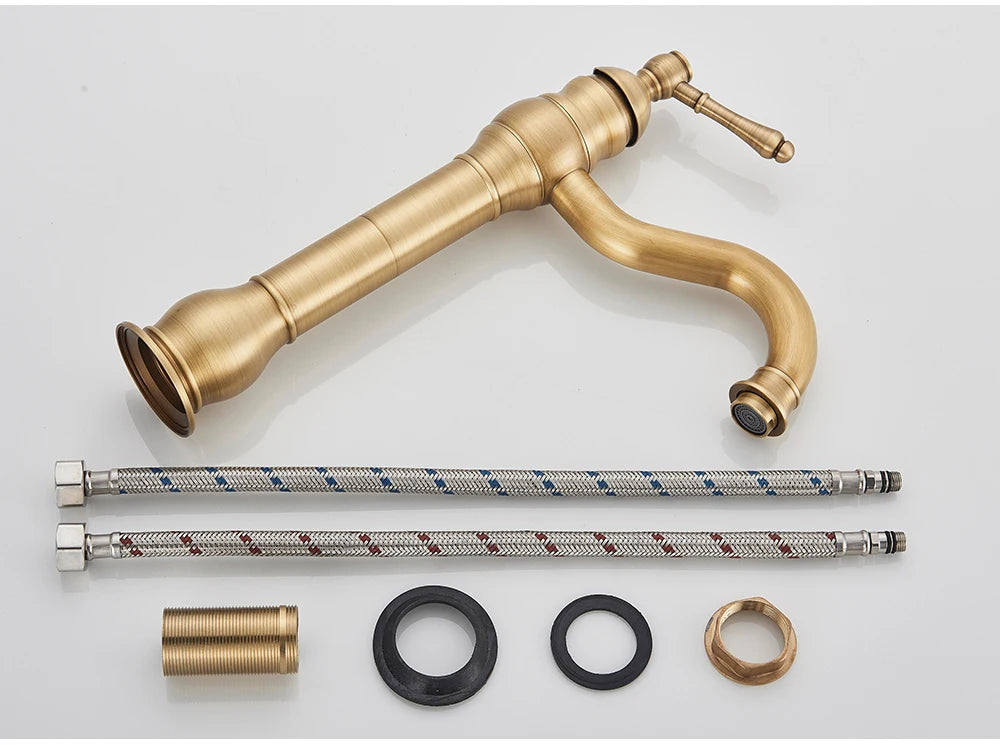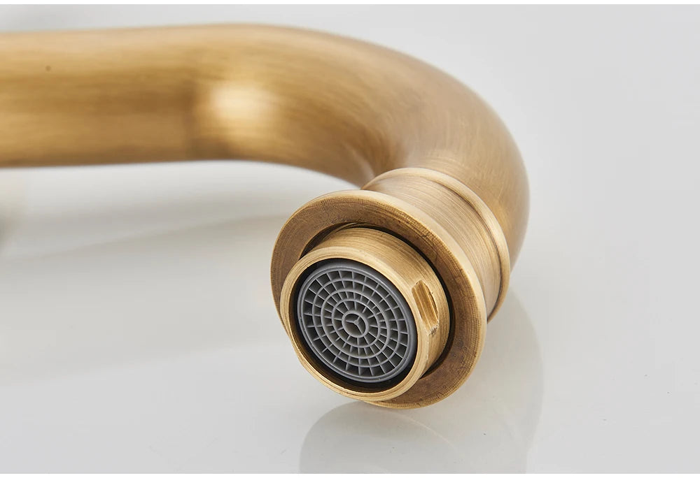 POIQIHY Antique Brass Basin Vessel Sink Faucet Deck Mounted One Hole Cold Hot Water Cold Hot Mixer Tap Bathroom Faucet 1 Hole