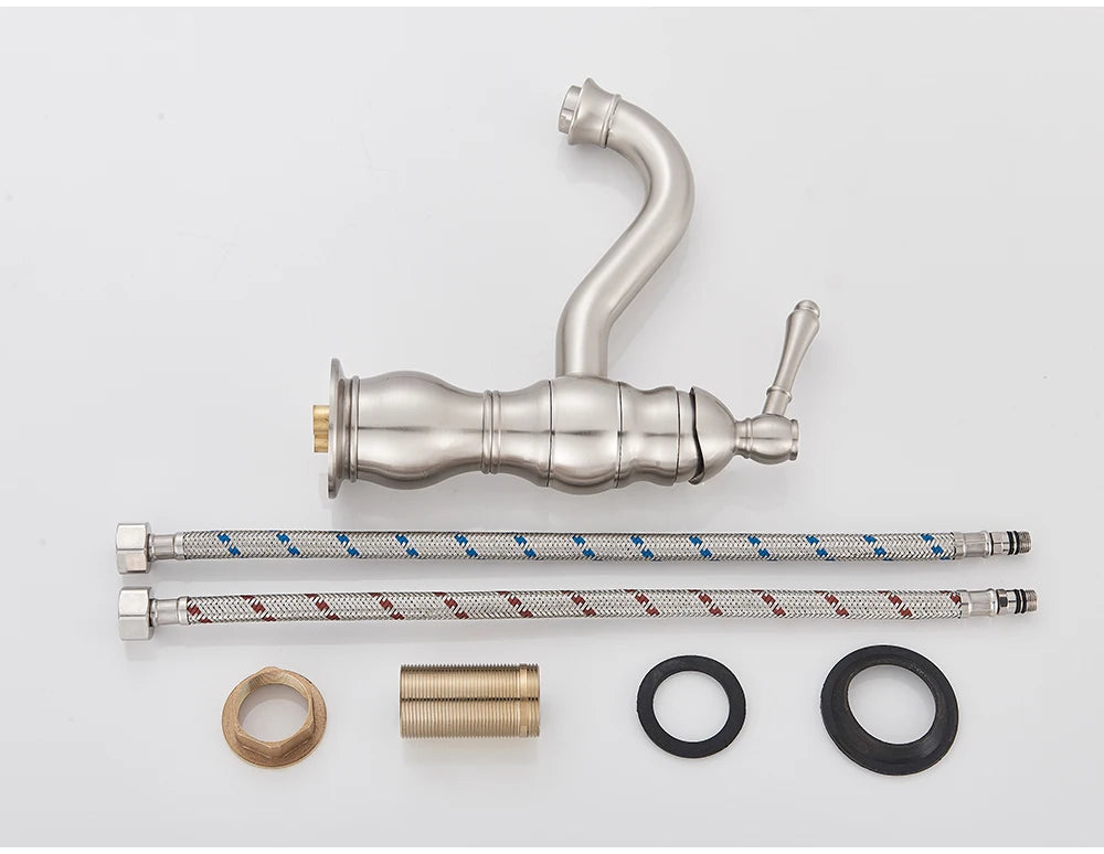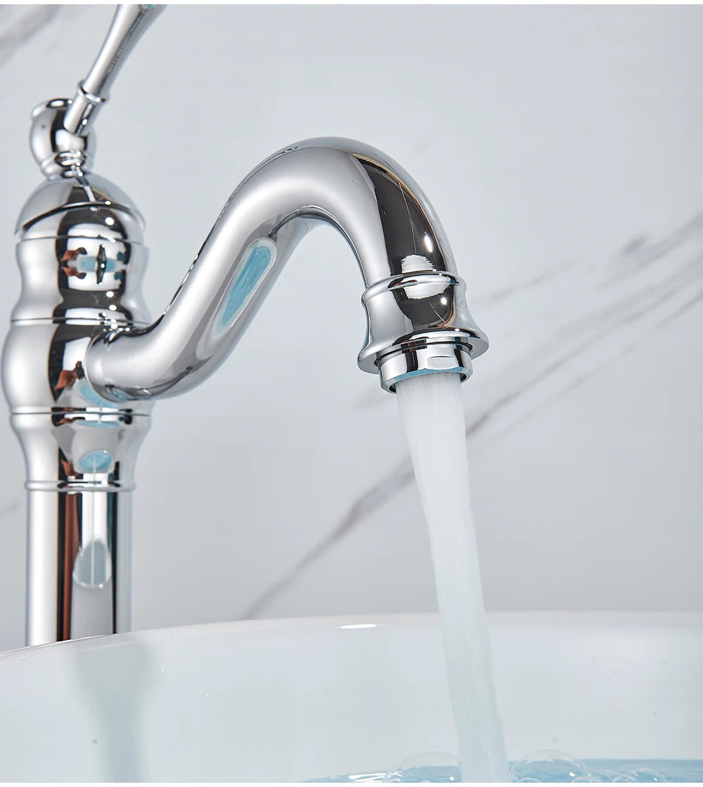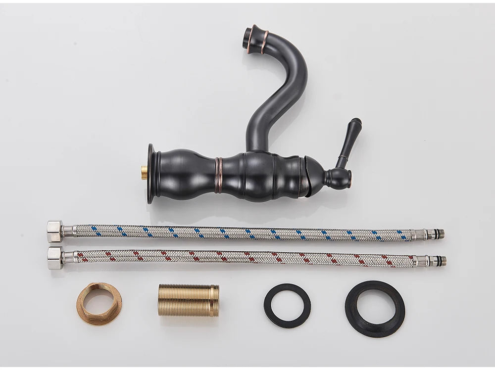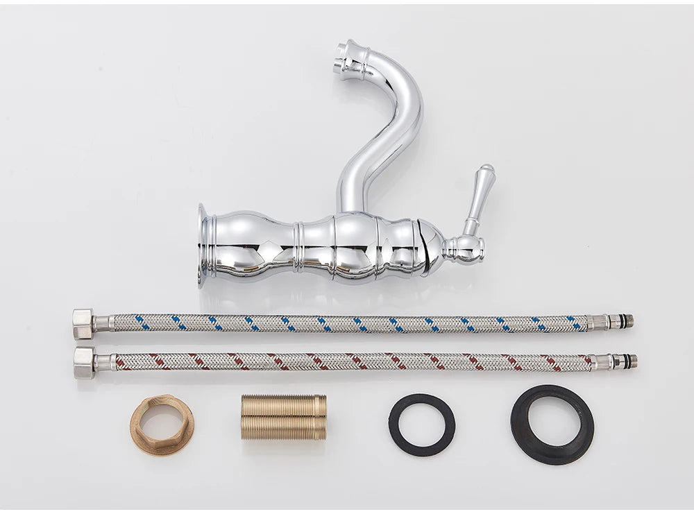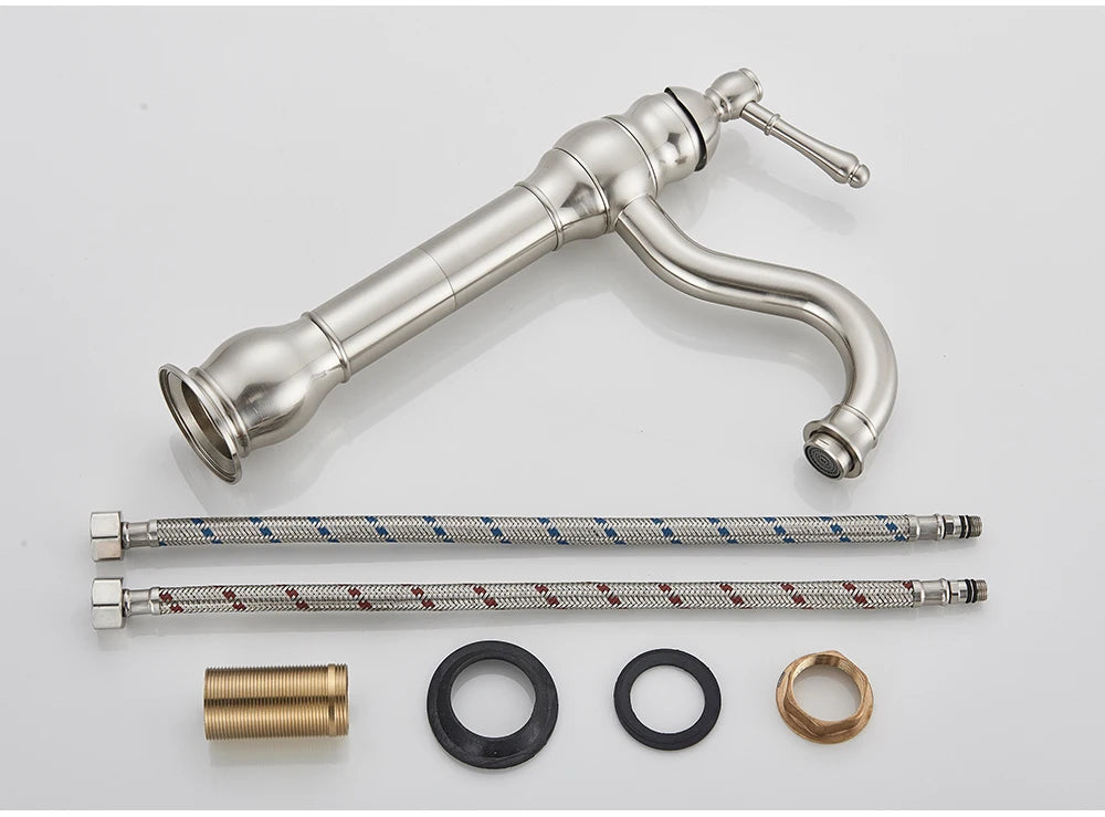 POIQIHY Antique Brass Basin Vessel Sink Faucet Deck Mounted One Hole Cold Hot Water Cold Hot Mixer Tap Bathroom Faucet 1 Hole