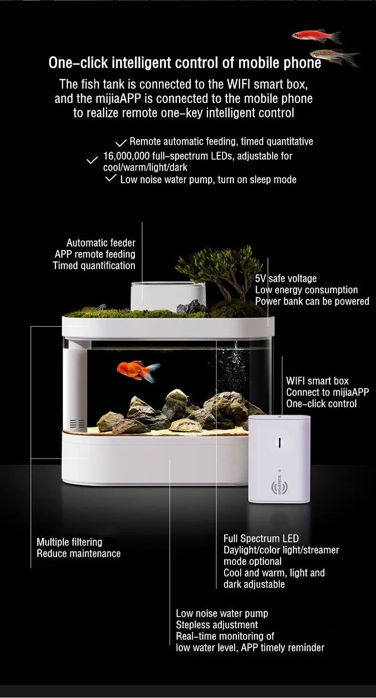 Smart Fish Tank Ecological Bottom Filter Fish Tank Desktop Aquarium Tank for Fish