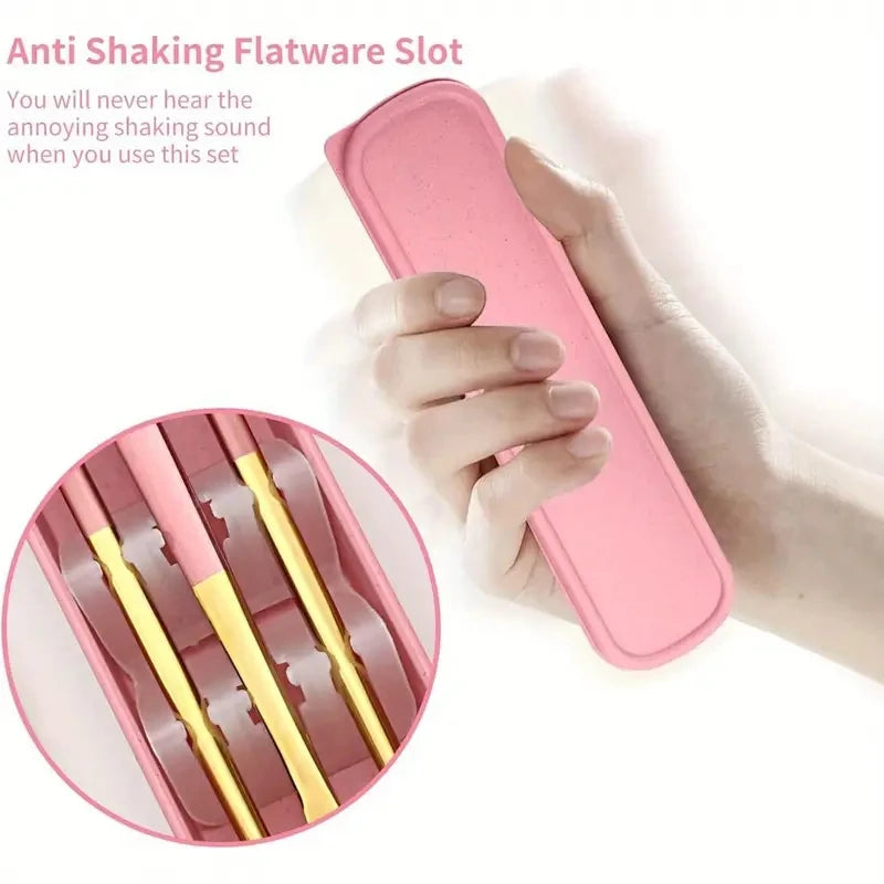 Stainless Steel Cutlery Set With Storage Box 4 Counts Portable Tableware Set For Home Kitchen Dining Room Household Tableware