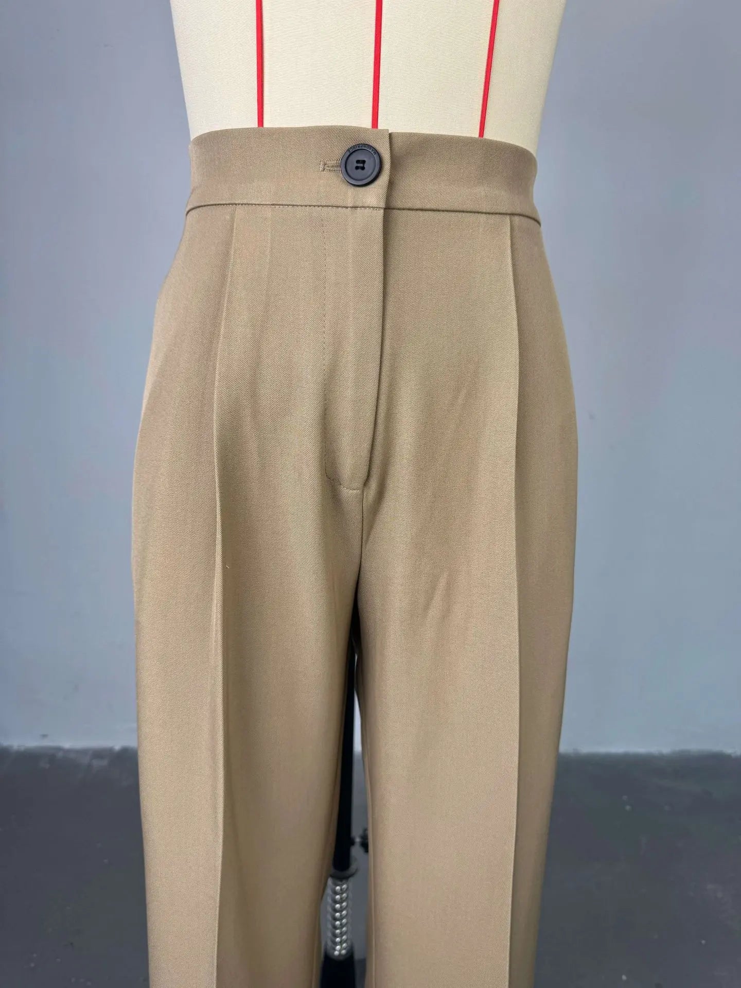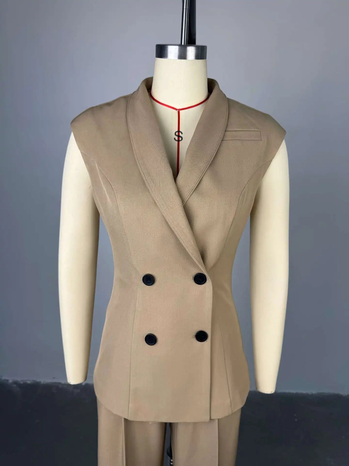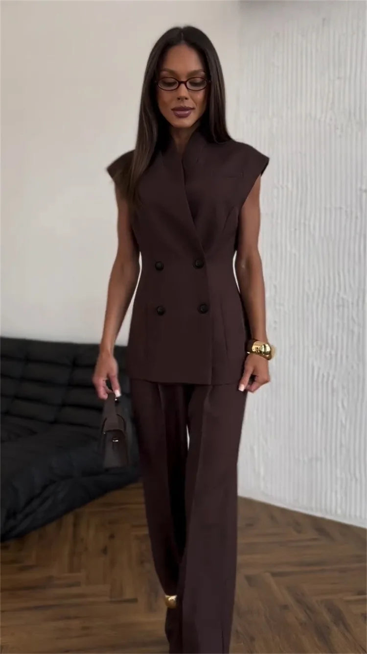 Street Slim Vest Pant Outfit Spring Women Sleeveless Double Breasted Tank Top+High Waist Zip Wide Leg Pants Summer Two Piece Set