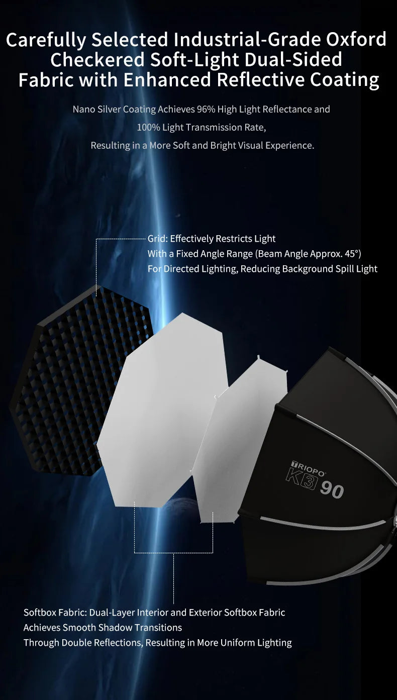 TRIOPO K3 Series Quick-Setup Octagon Softbox Bowens Mount for Sokani X100 X60 Mini Aputure 300c 200xS Godox LED Video Light